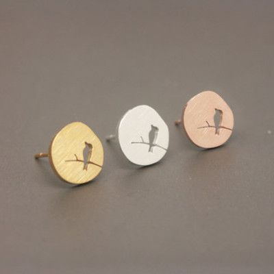Birds stand in the branches hollowed out bird ear studs