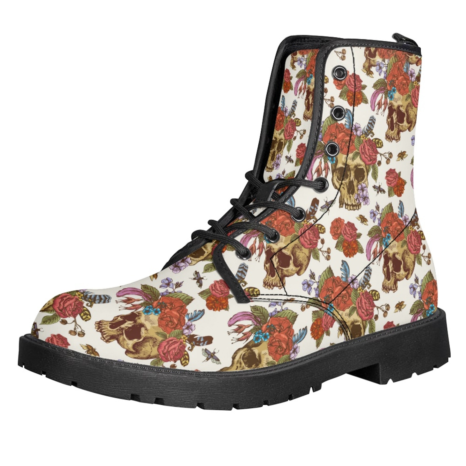 Printed Women's Leather Flat Bottom Low Heel British Martin Boots
