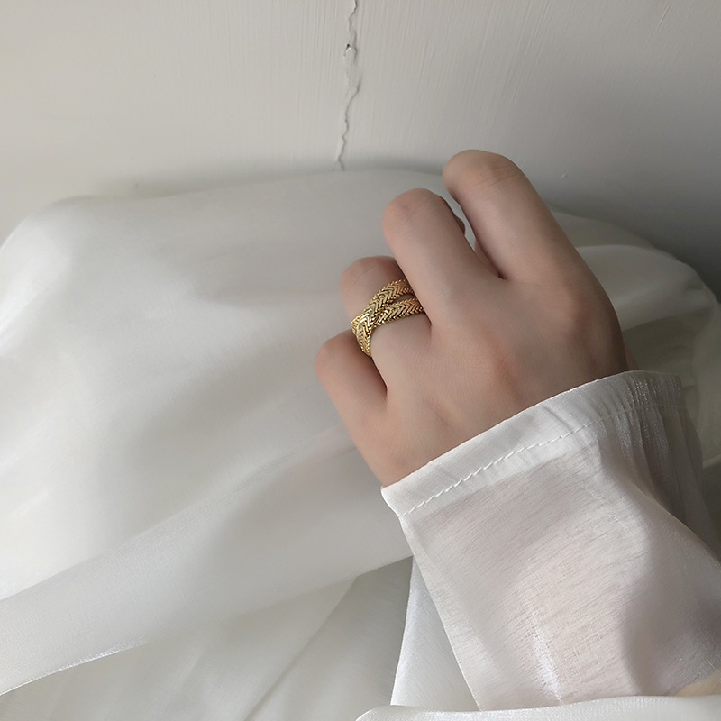 Double Overlap Winding Double Circle Cross Ring Brass Gold Plated