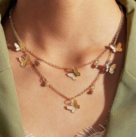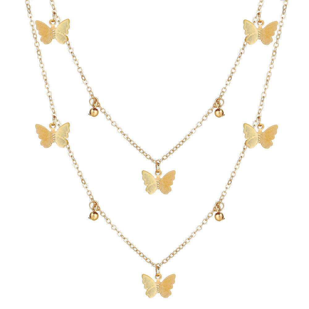 Material: Alloy Treatment process: electroplatingType; NecklaceStyle: Women'sStyling: ButterflyChain style; water wave chainPendant material; alloyCircumference: 21cm (inclusive)-50cm (inclusive)Color: golden