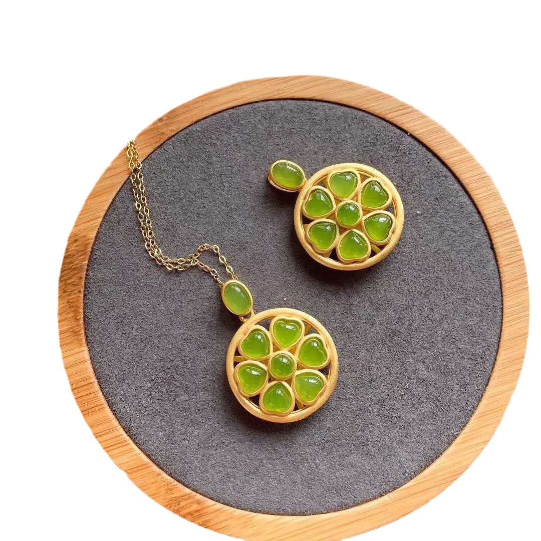 Color: Jasper Clover (single pendant),Jasper Clover (with 40 5CM gold necklace)