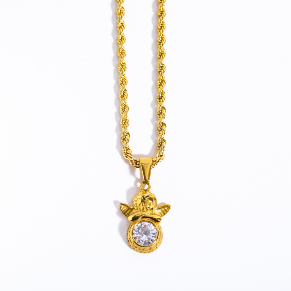 Product information:Treatment Process: Electroplating Chain style: Regular chain Material: Stainless steel Shape: Doll Popular elements: Angel Style: Retro Perimeter: 41cm (inclusive)-50cm (inclusive)