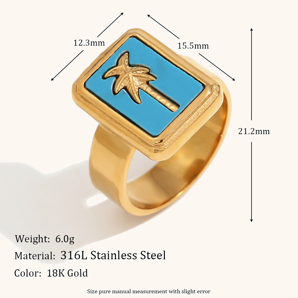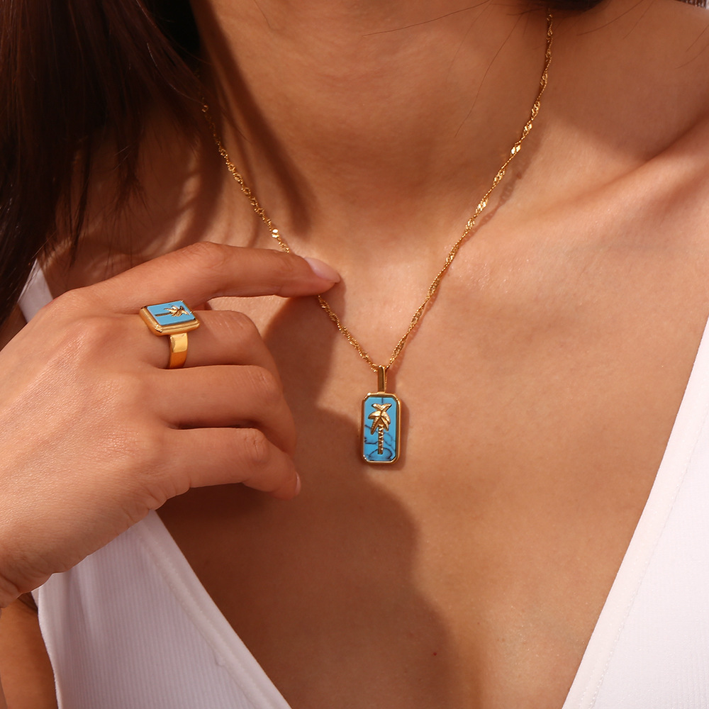 Color: color fritillary coconut tree square plate pendant necklace-gold Blue, color fritillary coconut tree square plate pendant necklace-gold powder, color fritillary coconut tree square plate pendant necklace-Gold White, summer color coconut tree square plate ring-gold Blue-No. 6, summer color coconut tree square plate ring-gold Blue-7, summer color coconut tree square plate ring-gold Blue-8, summer color coconut tree square plate ring-gold powder-6, summer color coconut tree square plate ring-gold powder-7, summer color coconut tree square plate ring-gold powder-8, summer color coconut tree square plate ring-Gold White-6, summer color coconut tree square plate ring-Gold White-No. 7, summer color coconut tree square plate ring-gold white-no. 8