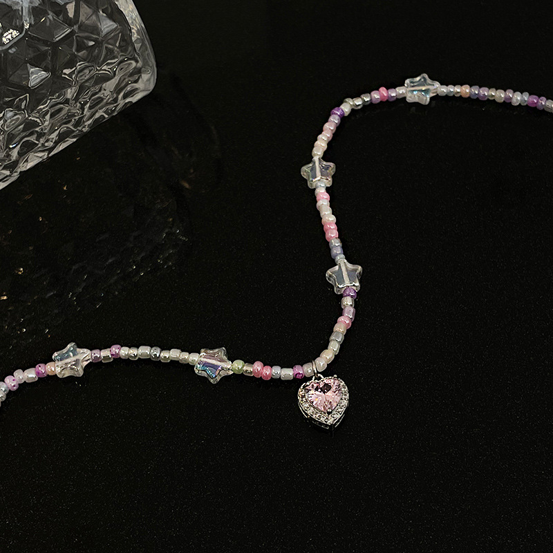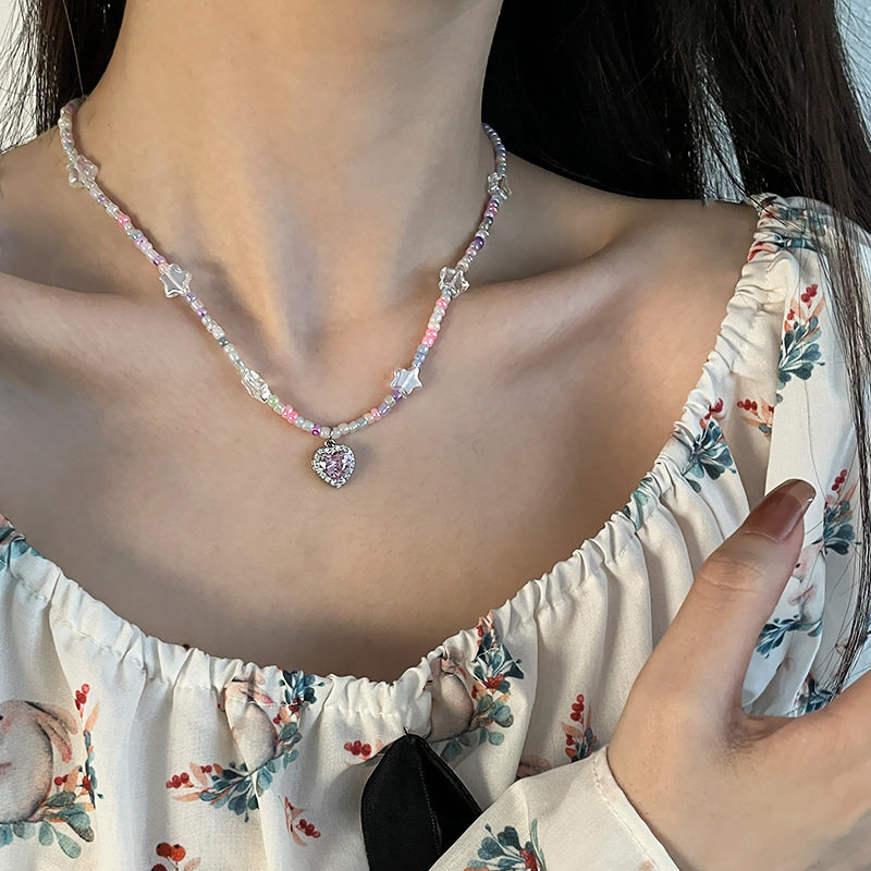 Color: pink heart beaded color necklace
