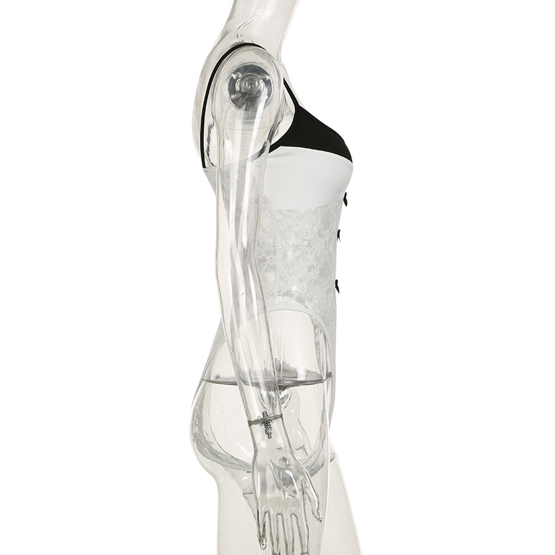 Women's Color-blocking Bow Hollow-out Jumpsuit