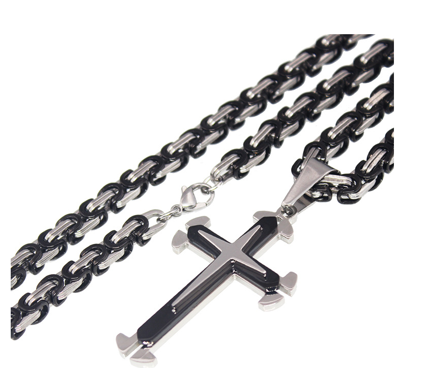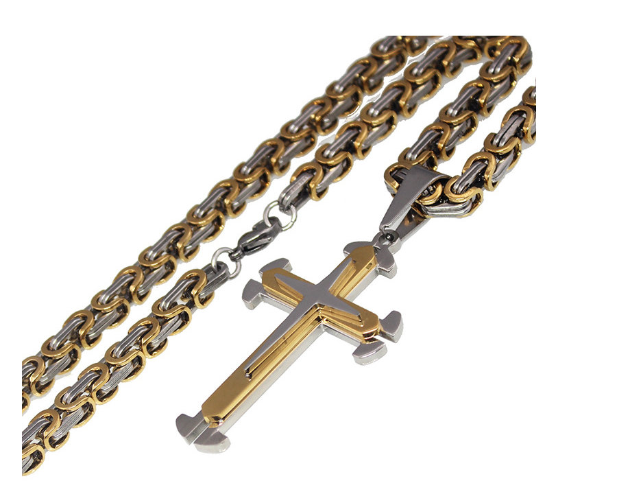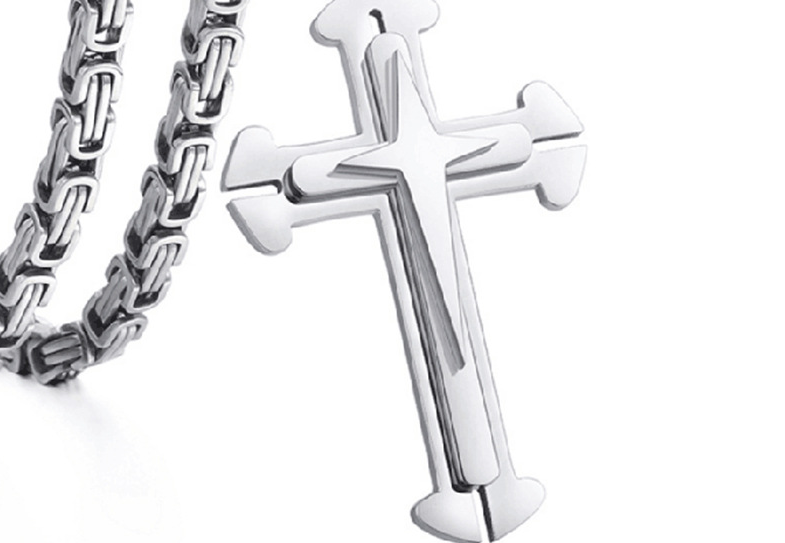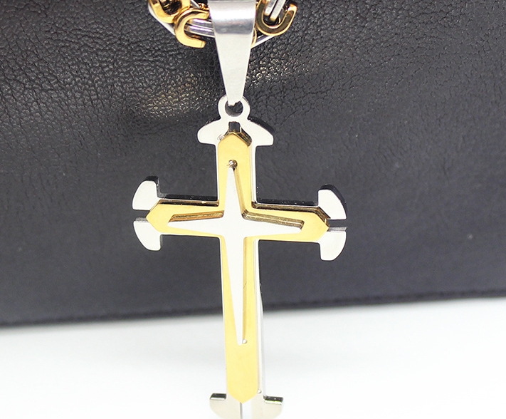 Europe and the United States sell high - quality three - layer cross - fork pendant titanium steel necklace stainless steel cross necklace