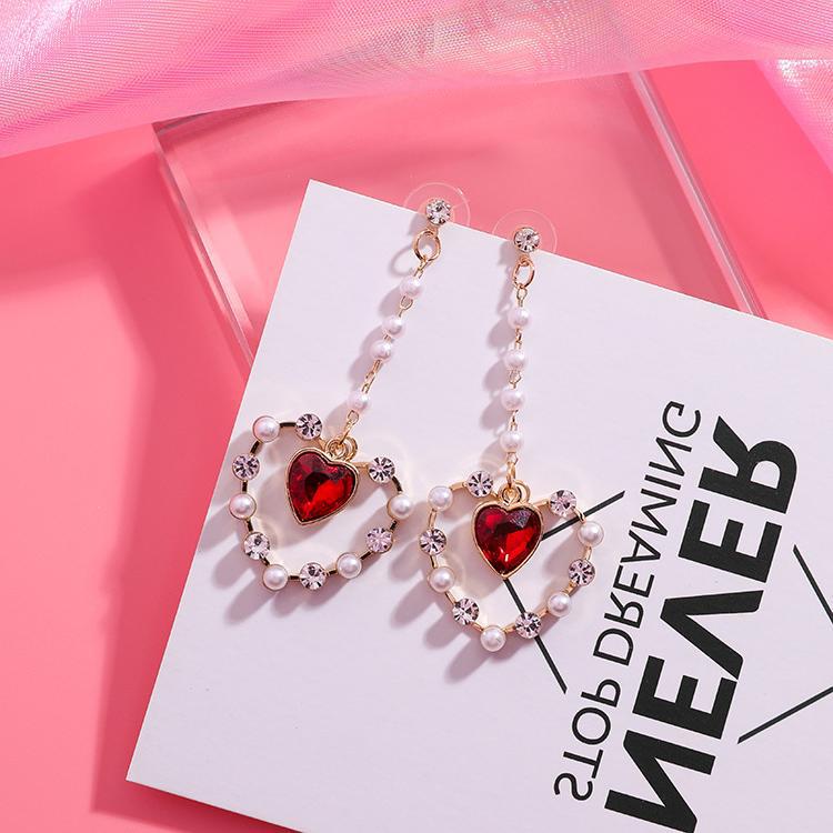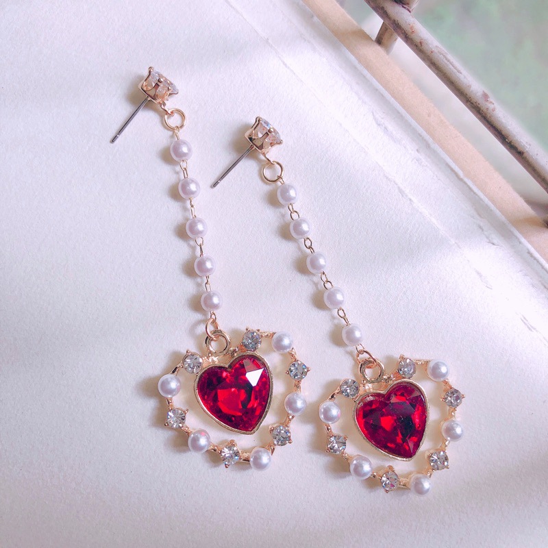 925 super fairy long pearl red gemstone love rhinestone earrings net red star temperament fashion earrings female