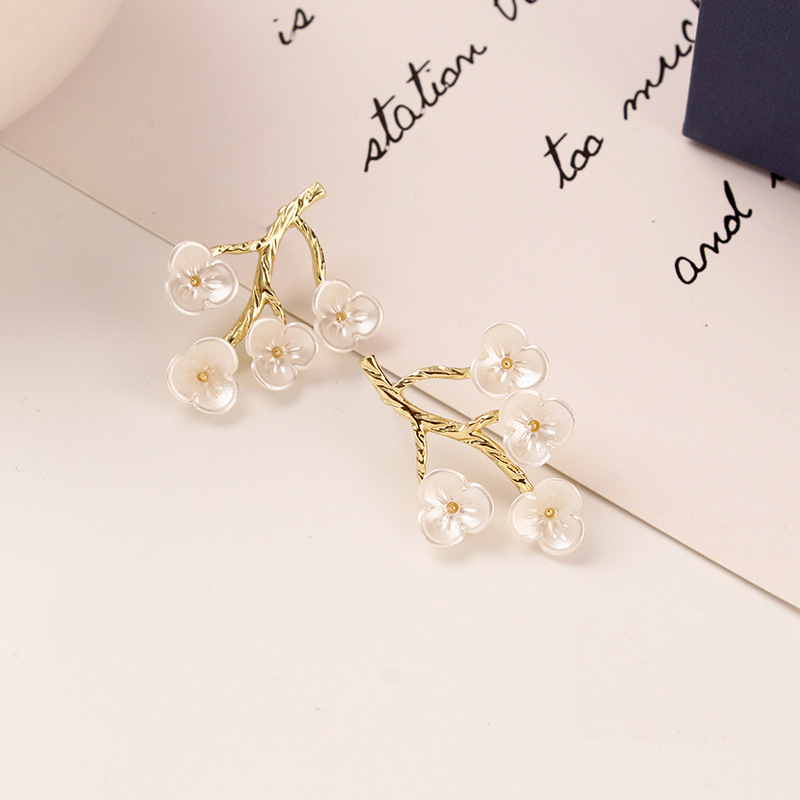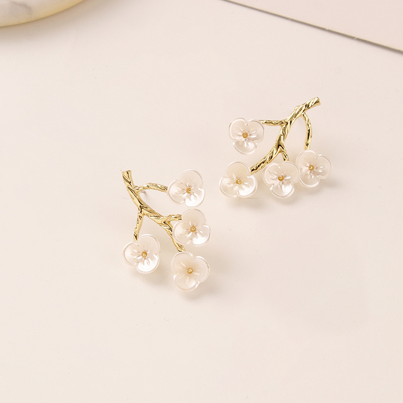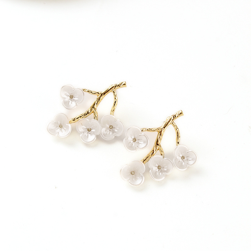 New Women's Fashion Natural Wind Branches Blooming Gold-Plated Earrings
