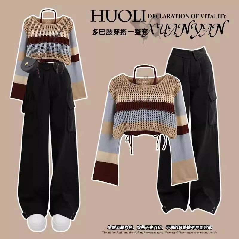Color: coffee three-piece set, black three-piece set, blue three-piece set