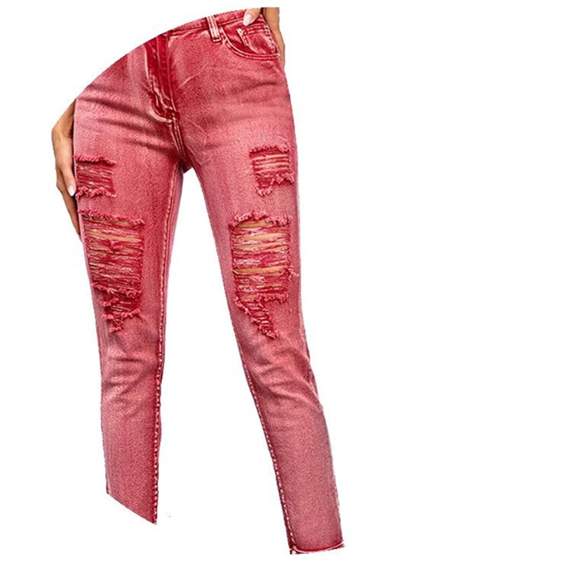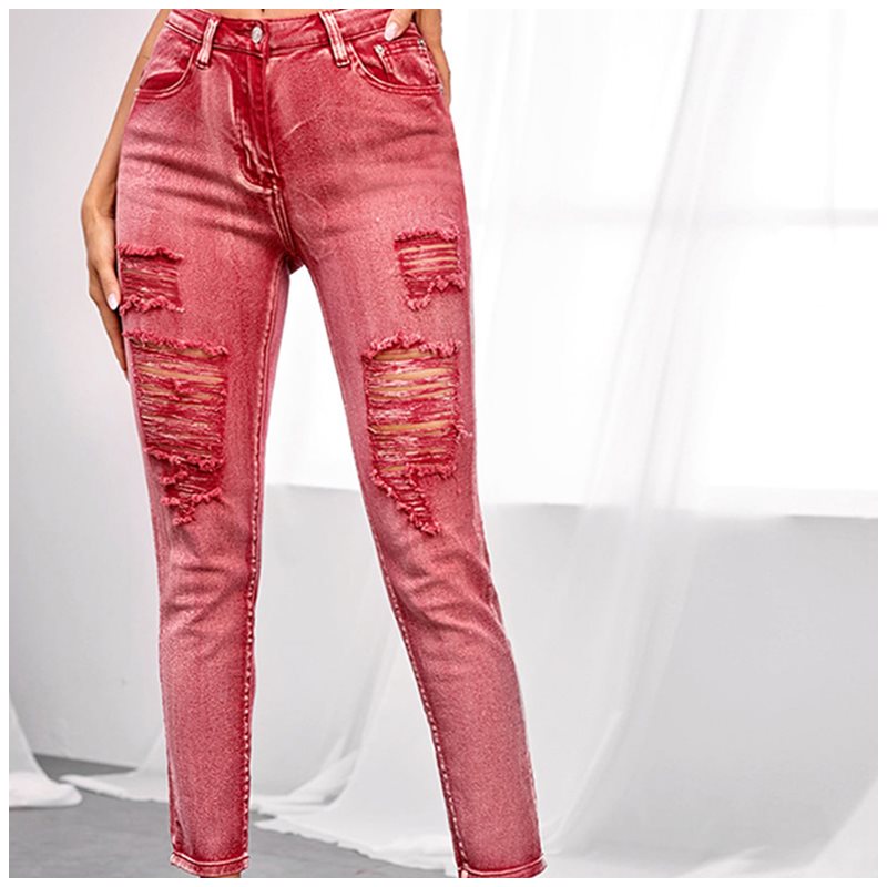 Style: high waist women's tight jeans stretch pants denim trousers ripped jeans