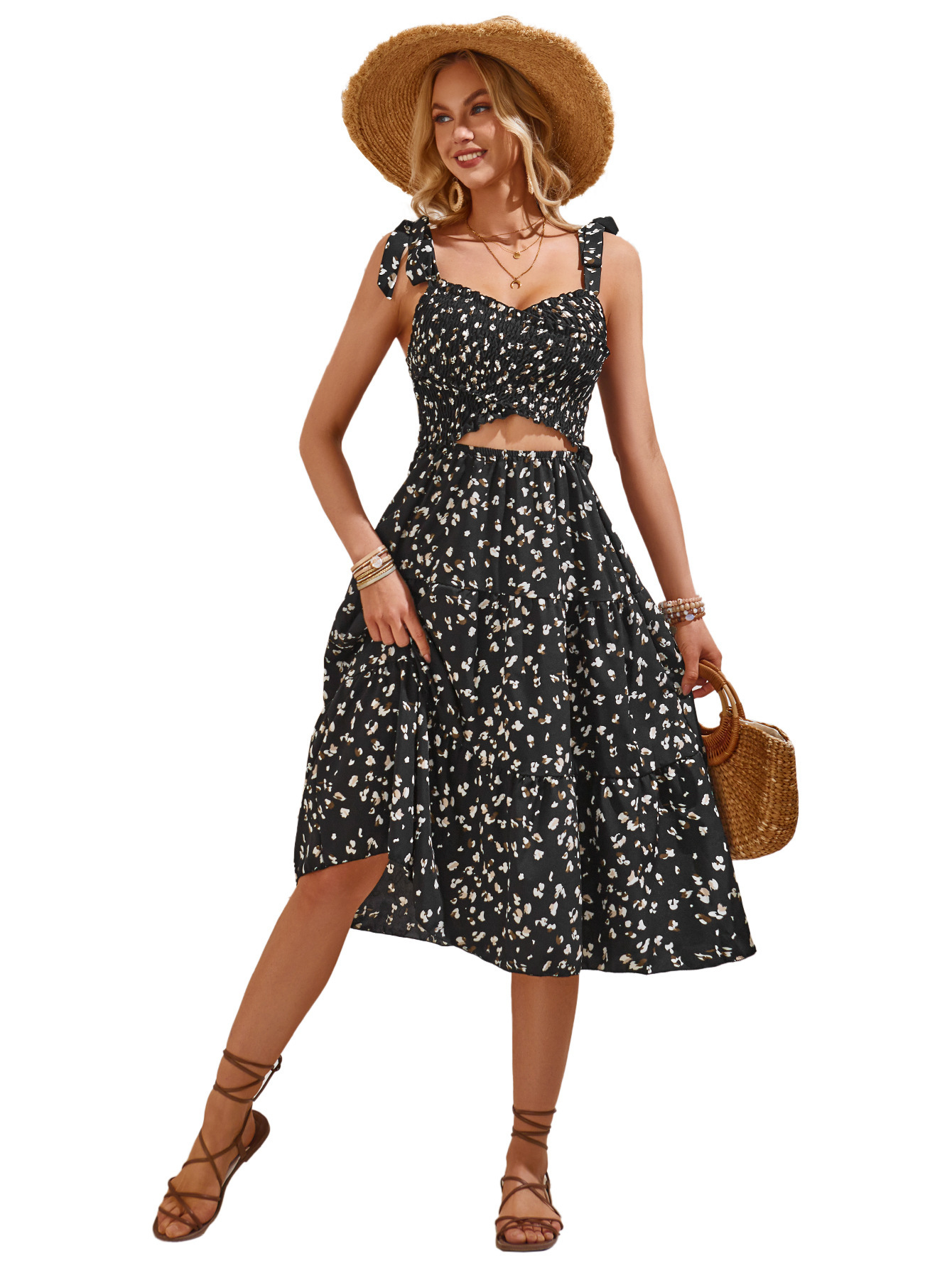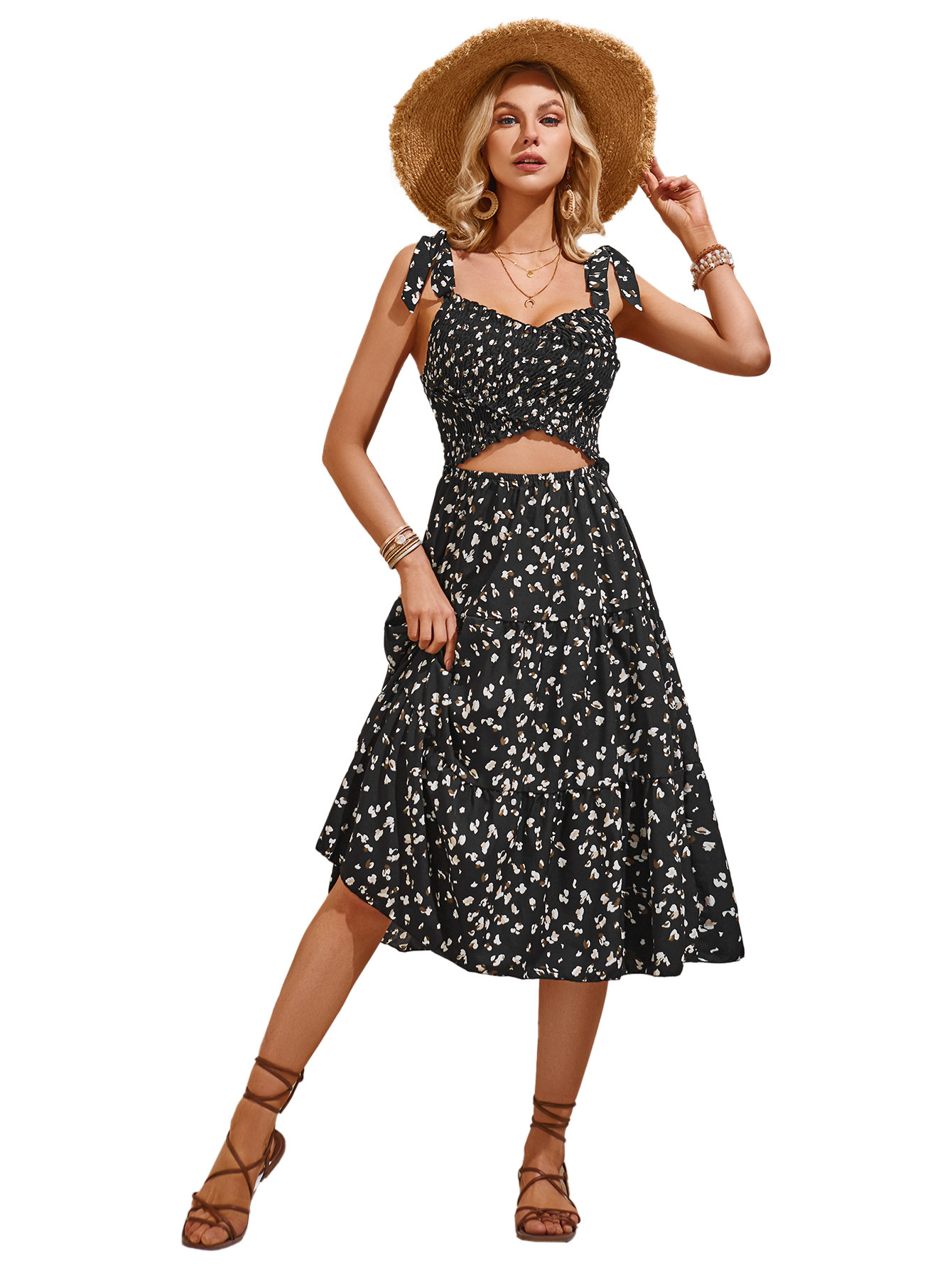 Product information: Color: Black, apricot, brick red Size: S,M,L,XL Style type: fresh and sweet Style: Sling style Fabric name: Polyester Skirt Category: Dress Style: fresh air