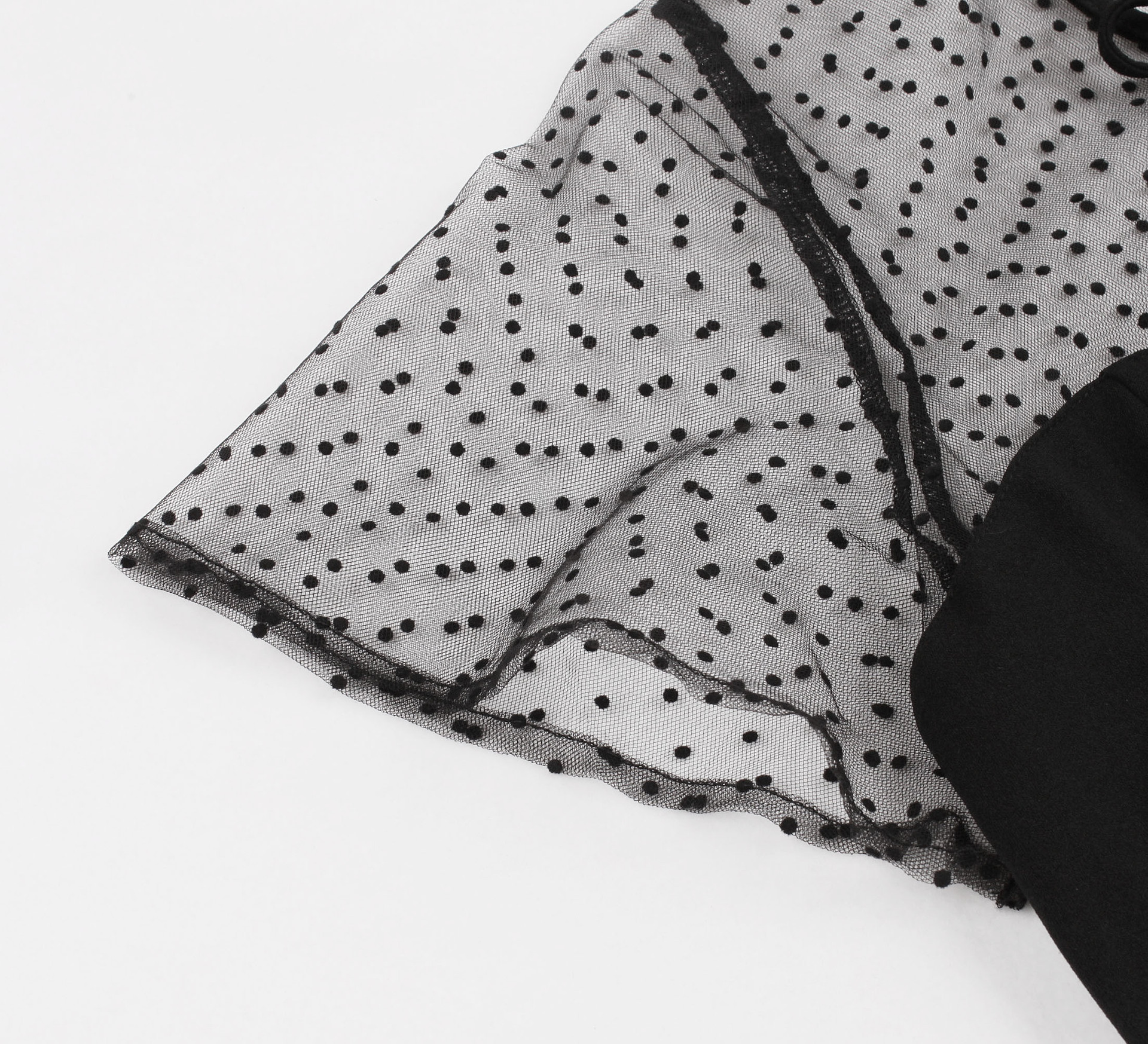 • Exquisite mesh and polka dot fabric blend for a luxurious textured look