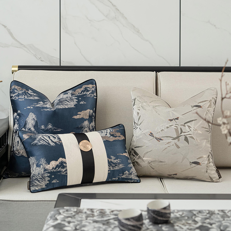 Material:BlendStyle:Fashion SimpleFeatures:EmbroideryColour: elegant blue landscape, bamboofly gray, colorful lumbar pillow