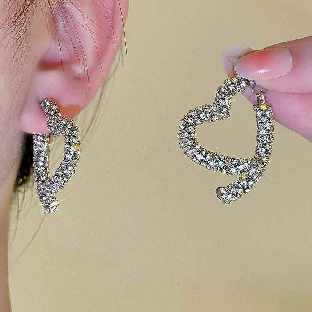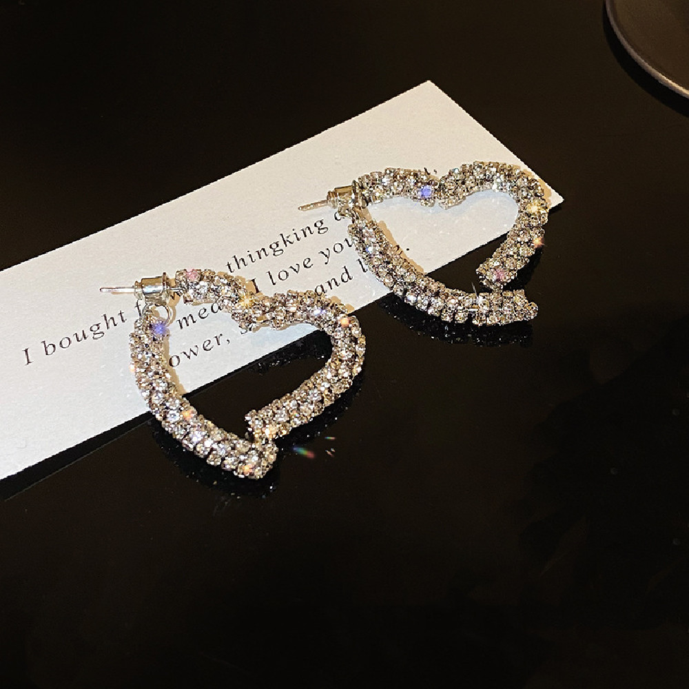 Product Information:Material: AlloyShape: HeartTreatment process: diamond settingColor: Love earringsStyle: Fresh and sweetPacking list:Earrings X1Pair
