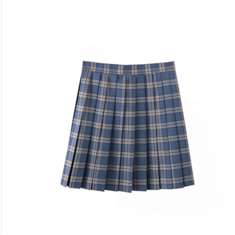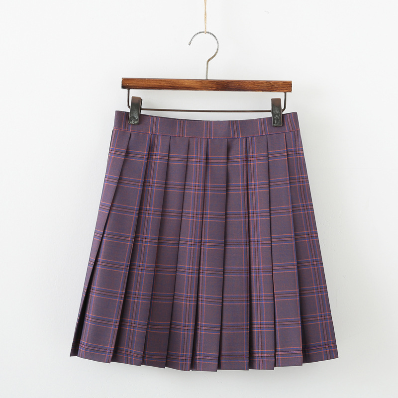 Color: gray plaid skirt, green plaid skirt, purple plaid skirt, brown plaid skirt, blue plaid skirt, blue and gold plaid skirt
