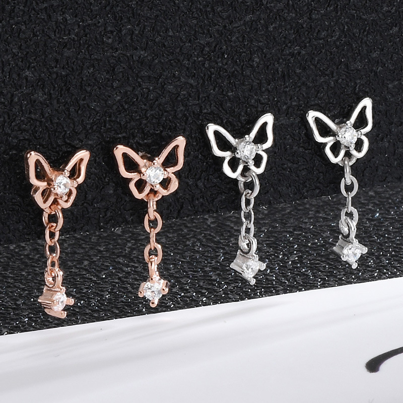 Product information:Color: platinum, rose goldApplicable people: womenStyle: UnisexMaterial: SilverPurity: 925 silverShape: BowPopular elements: ButterflyStyle: Korean style