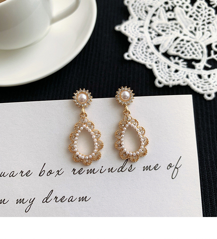 Hollow Water Drop Earrings with Pearl and Diamonds