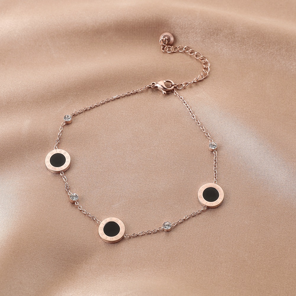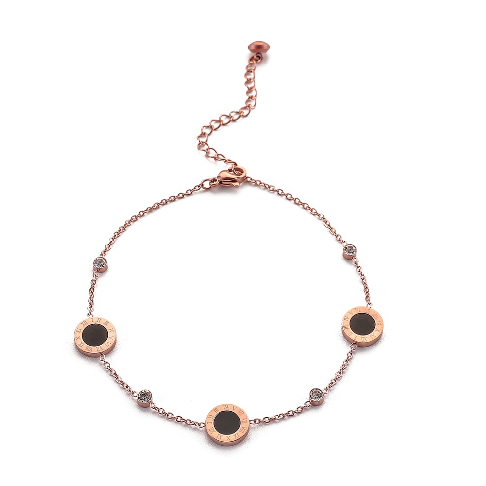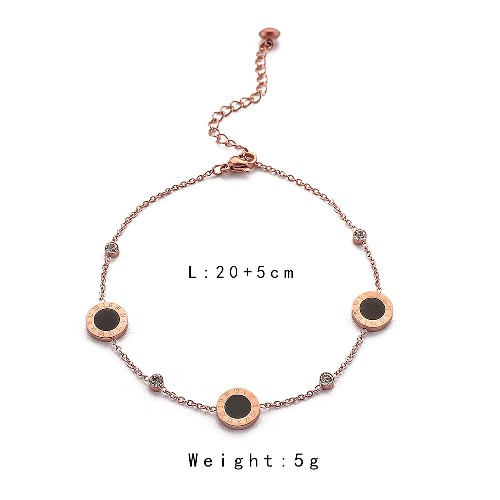 Spring New Stainless Steel Rose Gold Anklet Round Black Oil Roman Numeral Simple Personality Jewelry