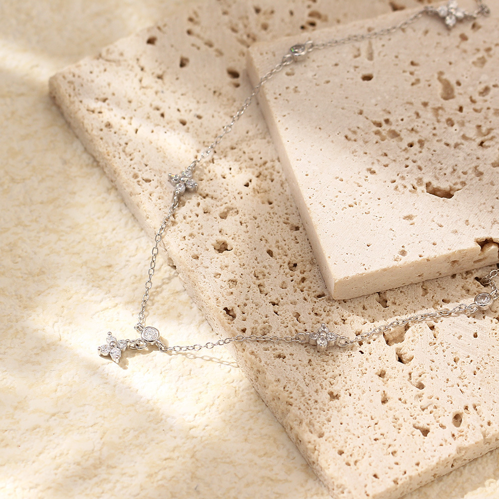 Product information:Treatment Process: Diamond Color: white gold, yellow gold Applicable population: Female Chain style: cross chain Material: Silver Shape: Flower