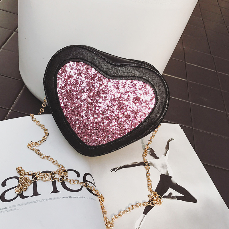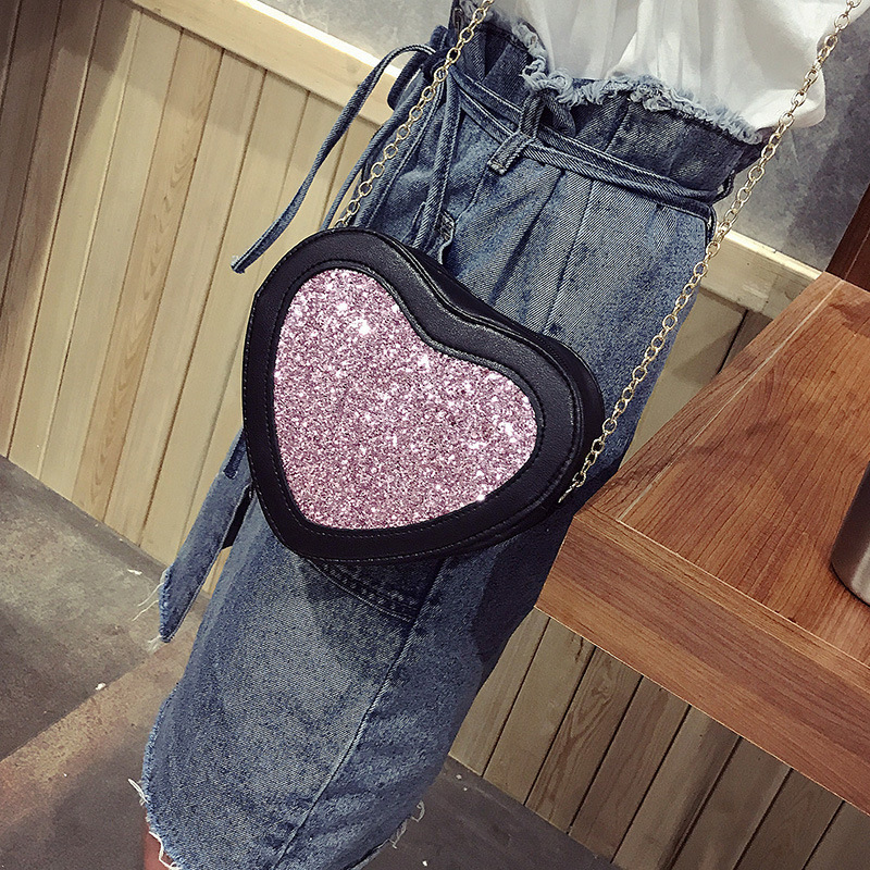 Korean mini love - shaped mini - bag personality sequined chain bag leisure with a single shoulder crossbody bag