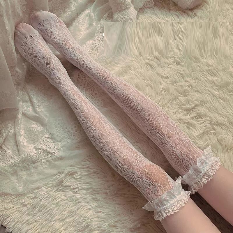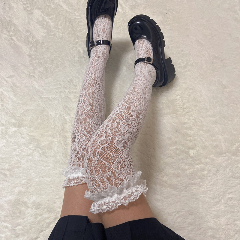 Product information :Main fabric composition: SpandexMain fabric ingredient content: 30 (%)Color: black-lace, white-laceSize Information:Size: one sizePacking list:Stockings*1pair