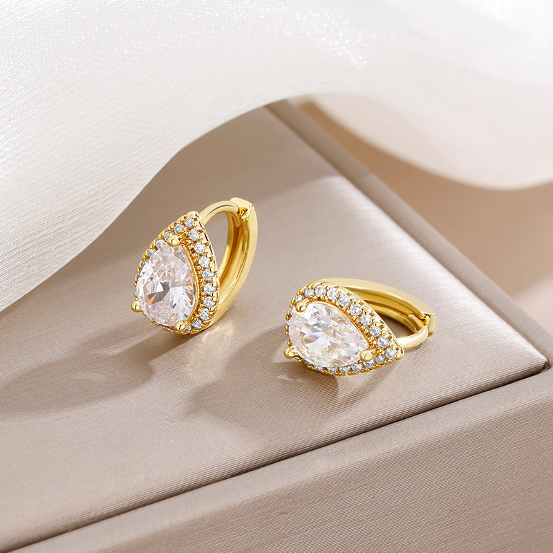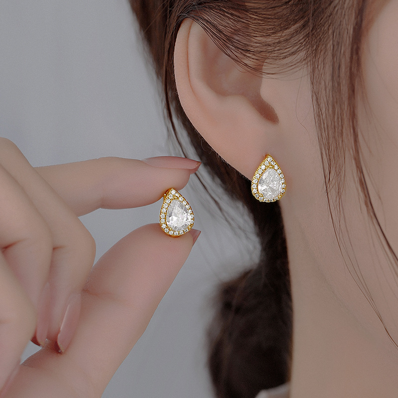 Product information:Treatment Process: ElectroplatingColor: water drop zircon earrings Yellow GoldApplicable people: womenMaterial: CopperShape: GeometricPopular elements: water dropletsStyle: affordable luxury style