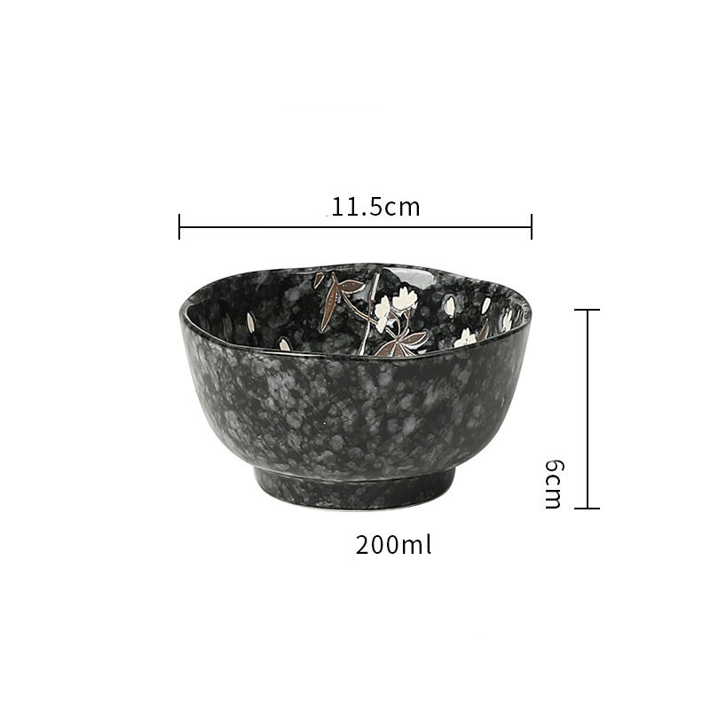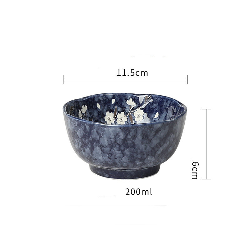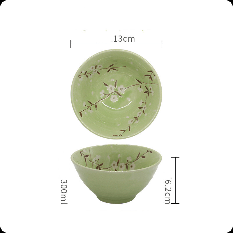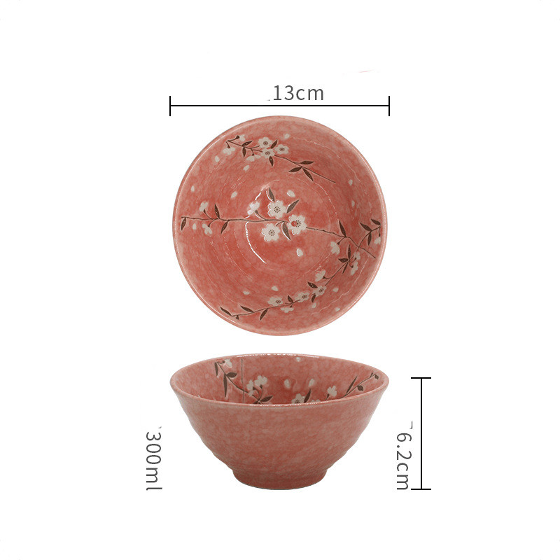 Material: porcelainPattern: plant flowersBowl mouth diameter: 4.5 inches, 5 inches, 7 inchesColor: blue, Ruomiao, peach, dark black, ivory