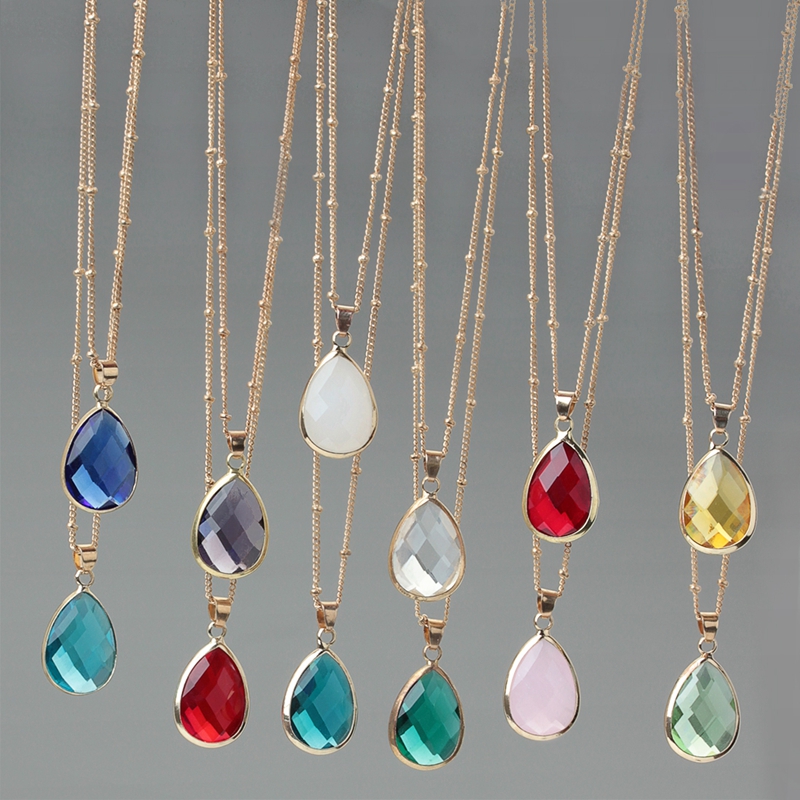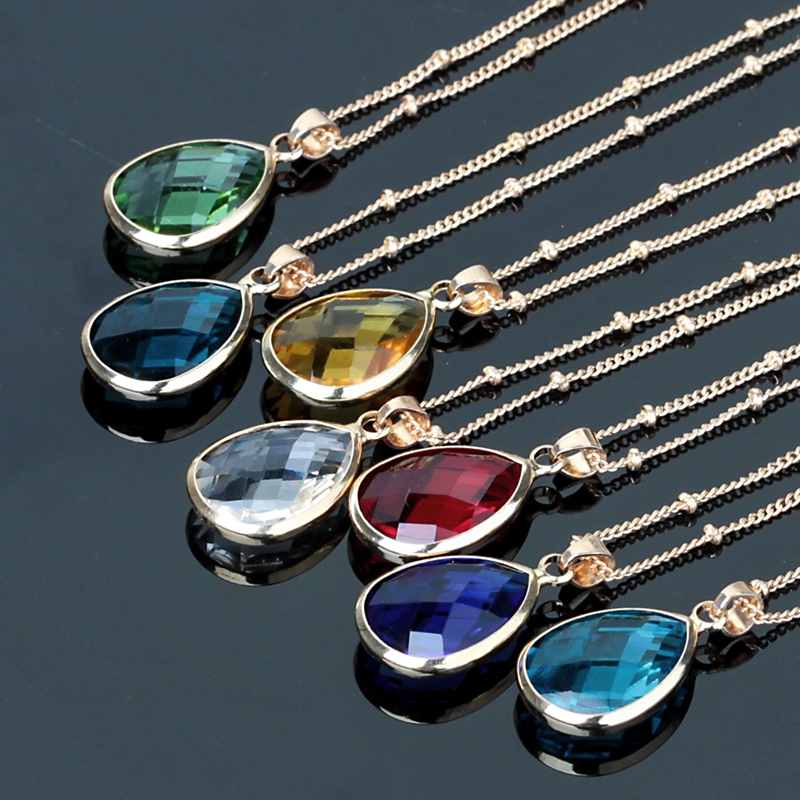 Korean version of the new glass drop pendant copper chain drop pendant necklace ladies short wild necklace clavicle chain
