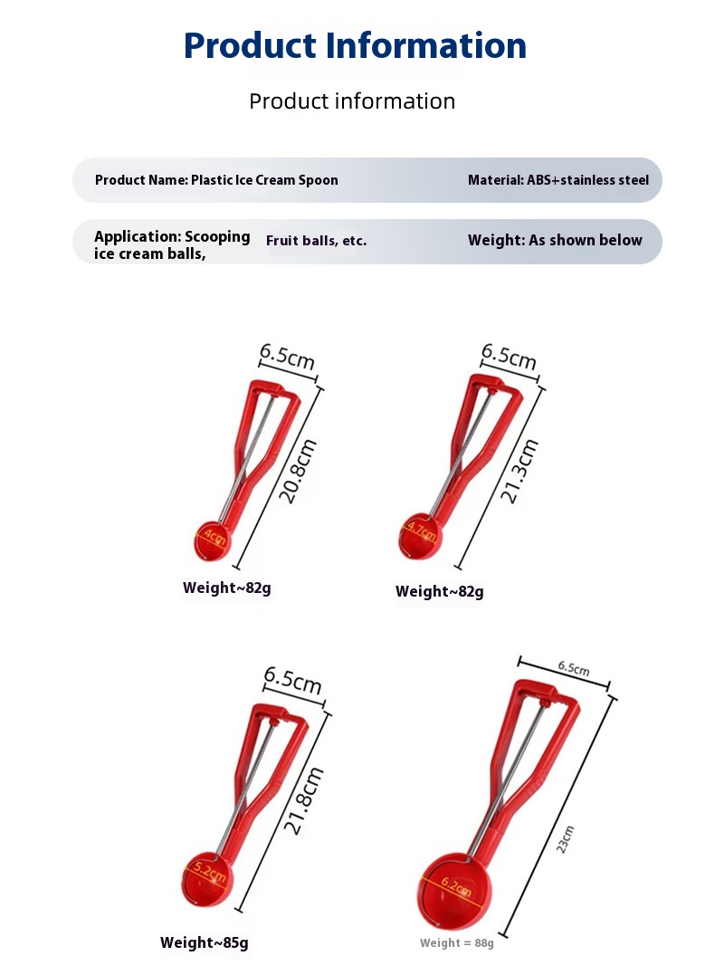 Product information:Specifications: plastic ice-cream spoon (large), plastic ice-cream spoon (medium), plastic ice-cream spoon (small size), plastic ice-cream spoon (extra large) Material: Plastic Style: modern simplicity