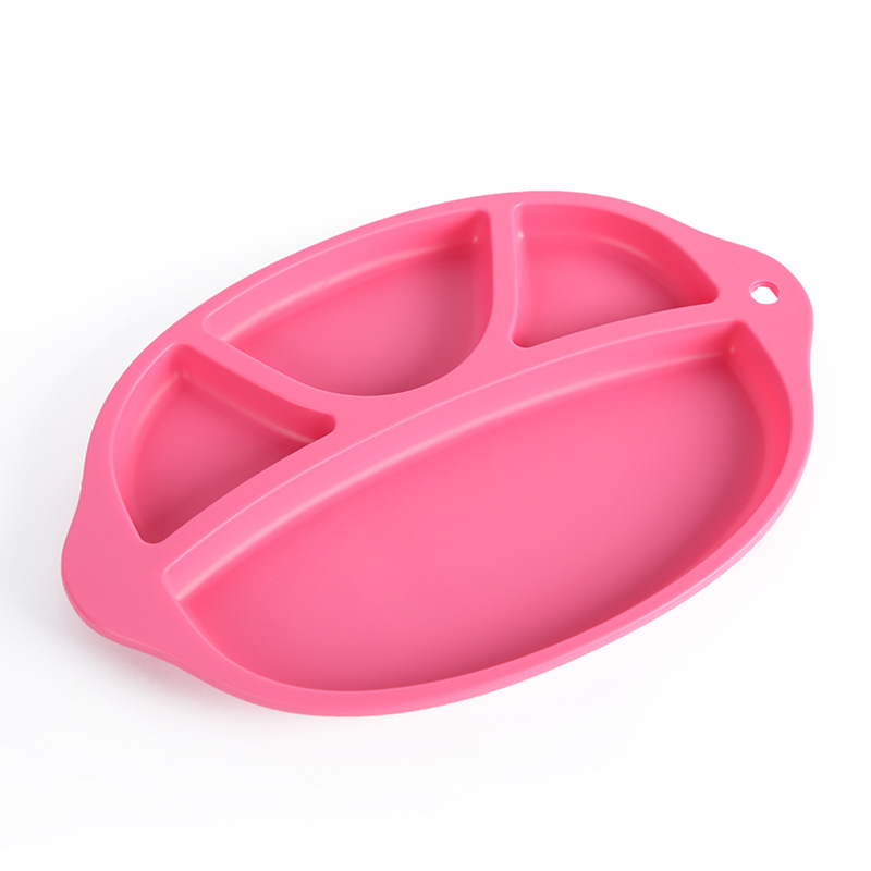 Name: Children's PlateColor: pink, blue, rose red, graySize: 27.5*18*2CMMaterial: Food grade siliconePacking: default opp bag