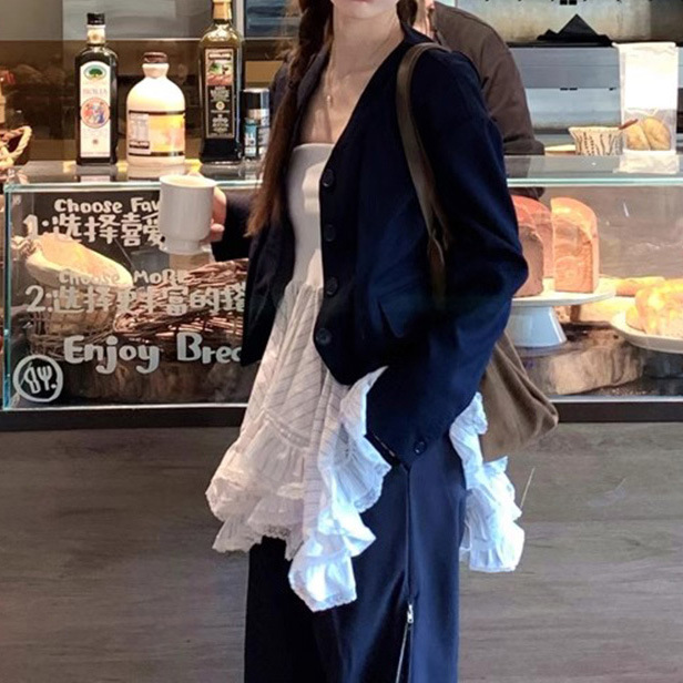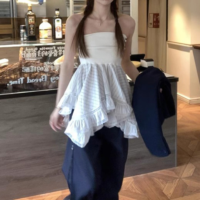 Design Sense Niche Striped Stitching Tube Top Skirt