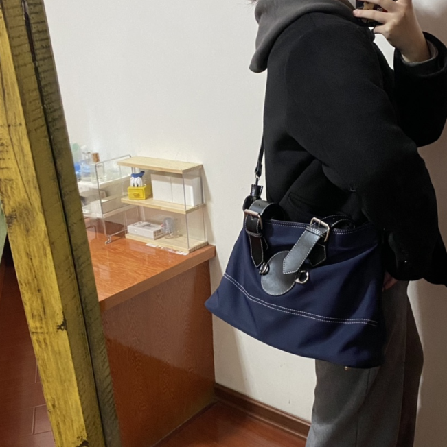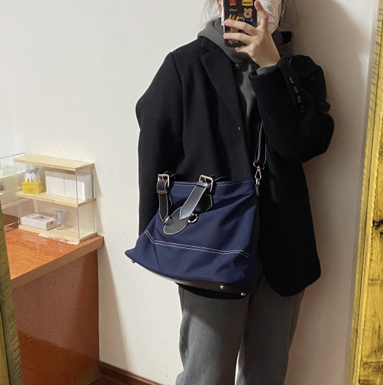 Texture: nylon clothClosing method: zipperPattern: solid colorInternal structure: zipper pocketType of lifting part: soft handleColor: dark blueSize: 43 * 27cm
