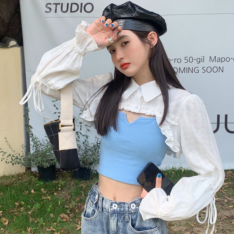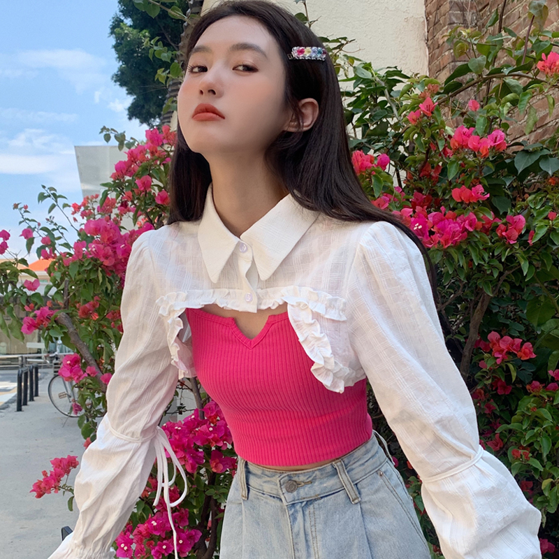 Color classification: One piece of white shirt, one piece of rose red sling, one piece of blue sling