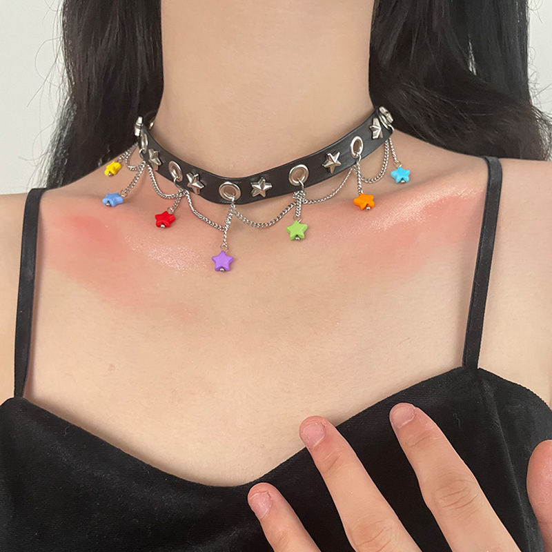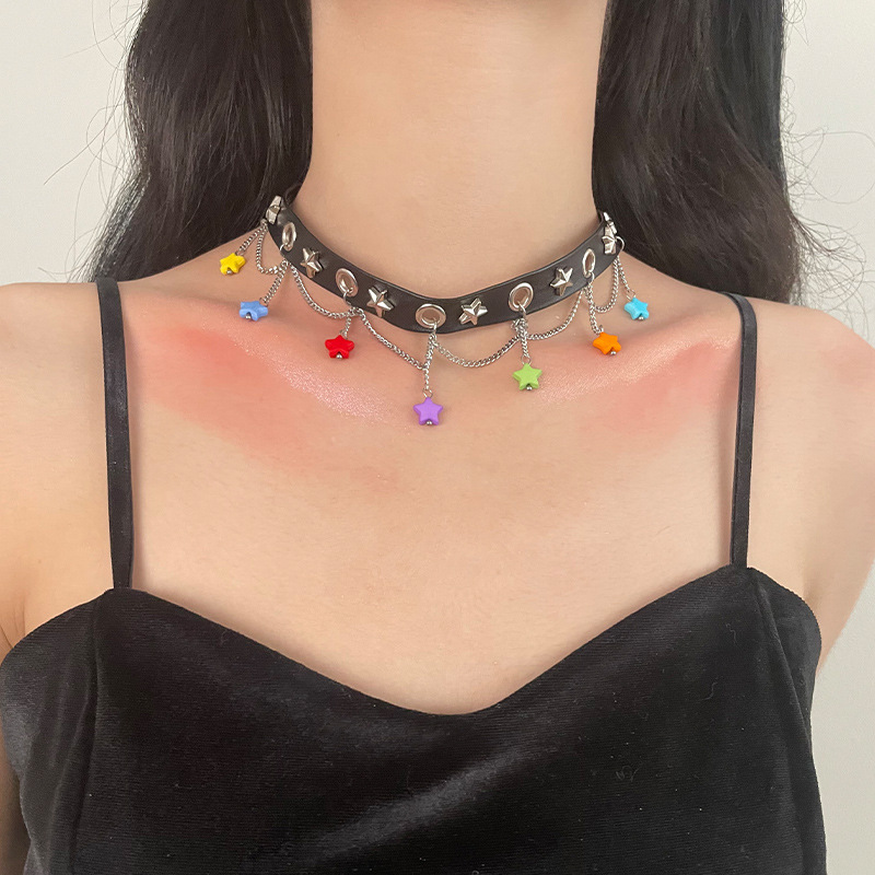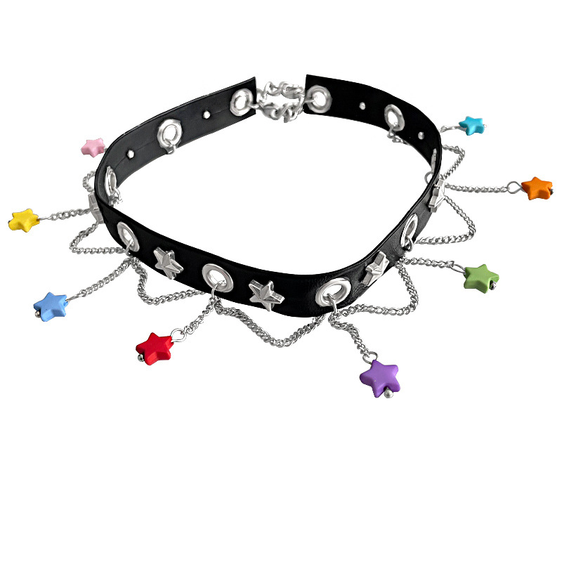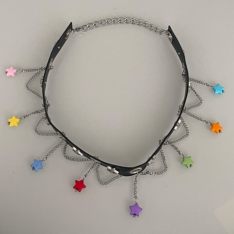 Product information:Color: Color XINGX clavicle chainApplicable people: womenChain style: curb necklaceMaterial: mixed materialShape: Star, geometric, otherPopular elements: Tassel, five-pointed star, chainStyle: Hip hop