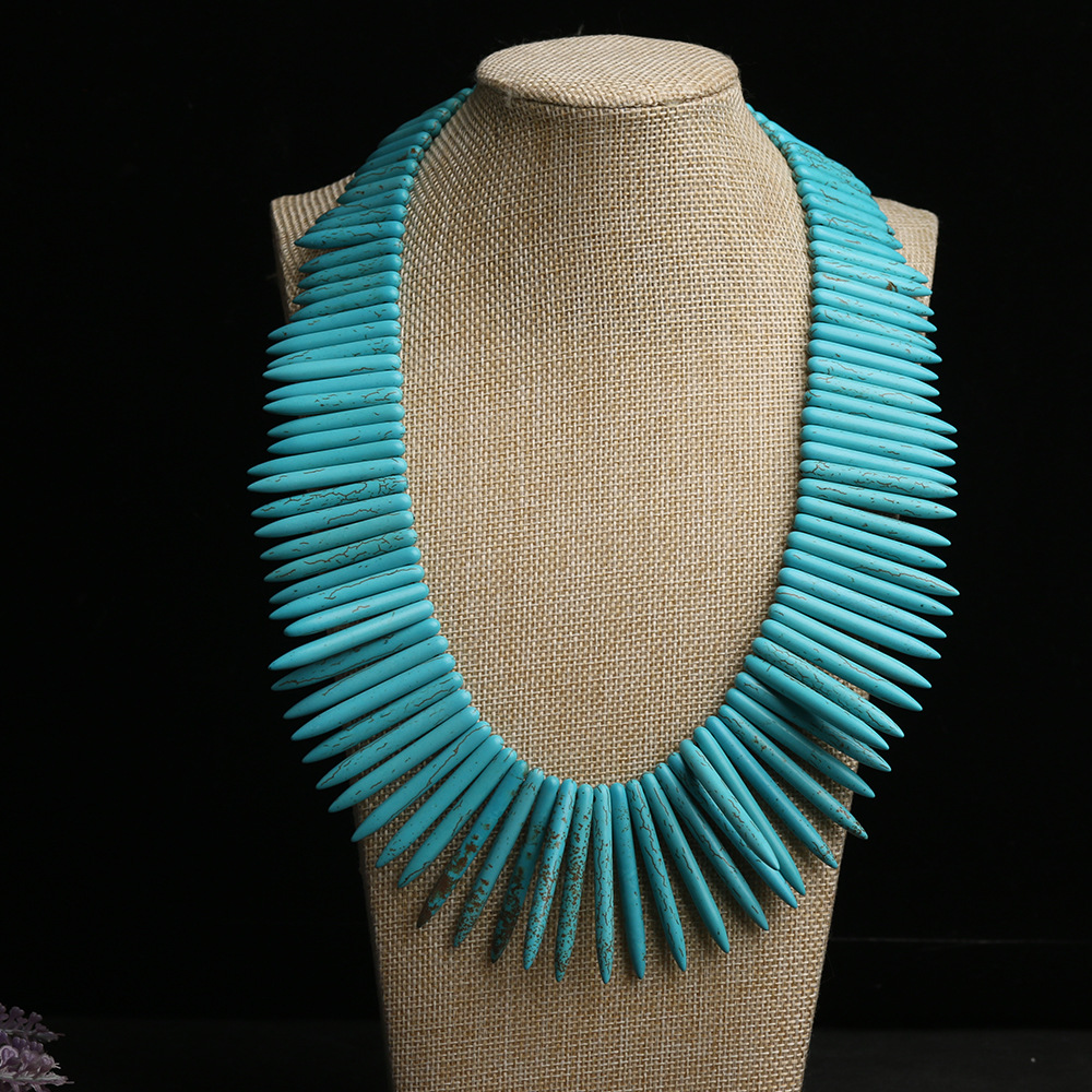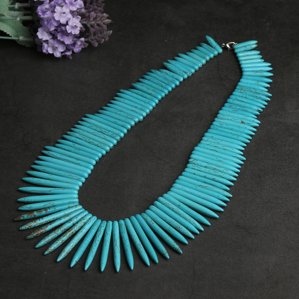 Product information:Style: VintageMaterial: TurquoiseTreatment process: polishingKind: NecklaceCircumference: 81cm and aboveColor: Single circleSize Information:Size: short needle 20mmx5mm long needle 48mmx5mmPacking listNecklace*1