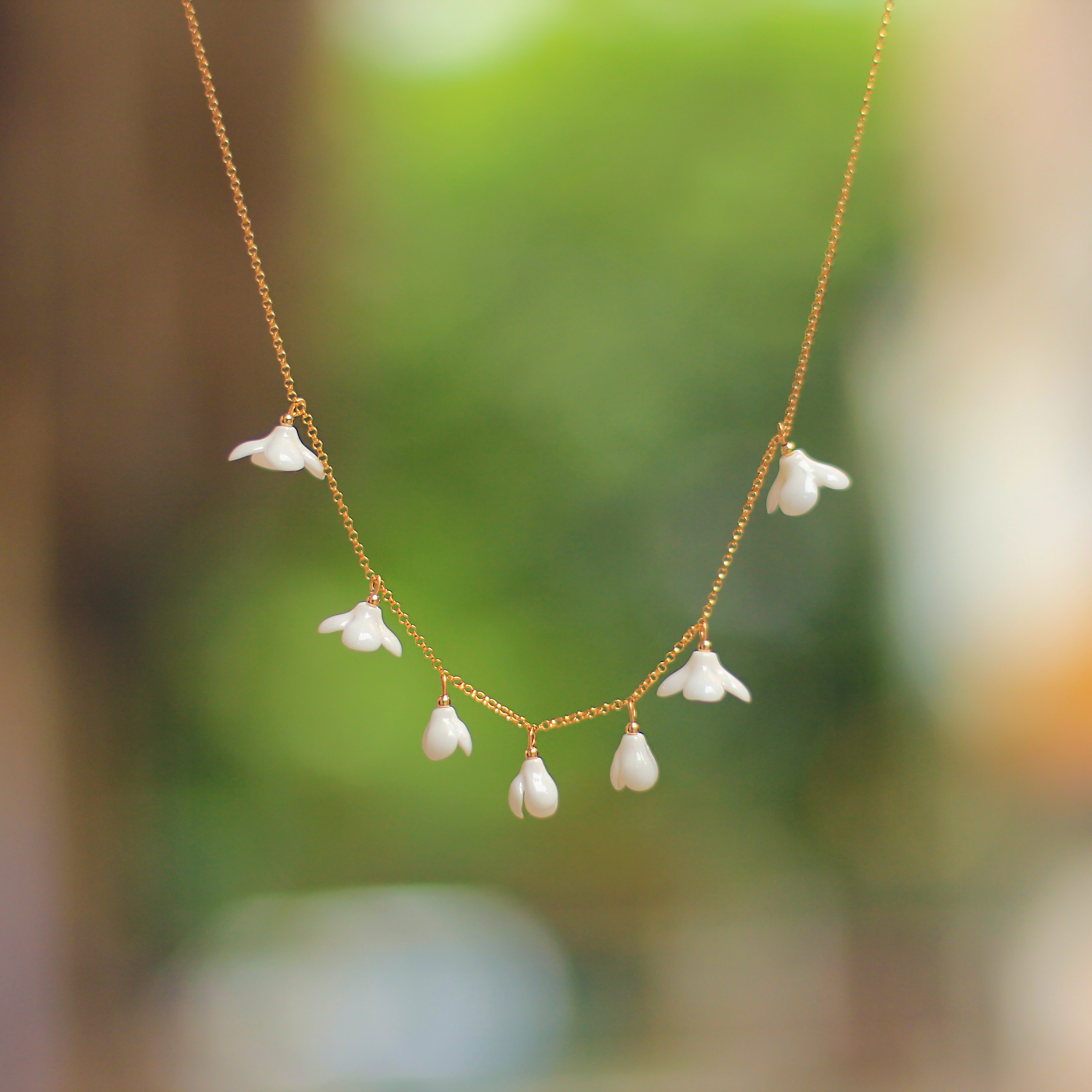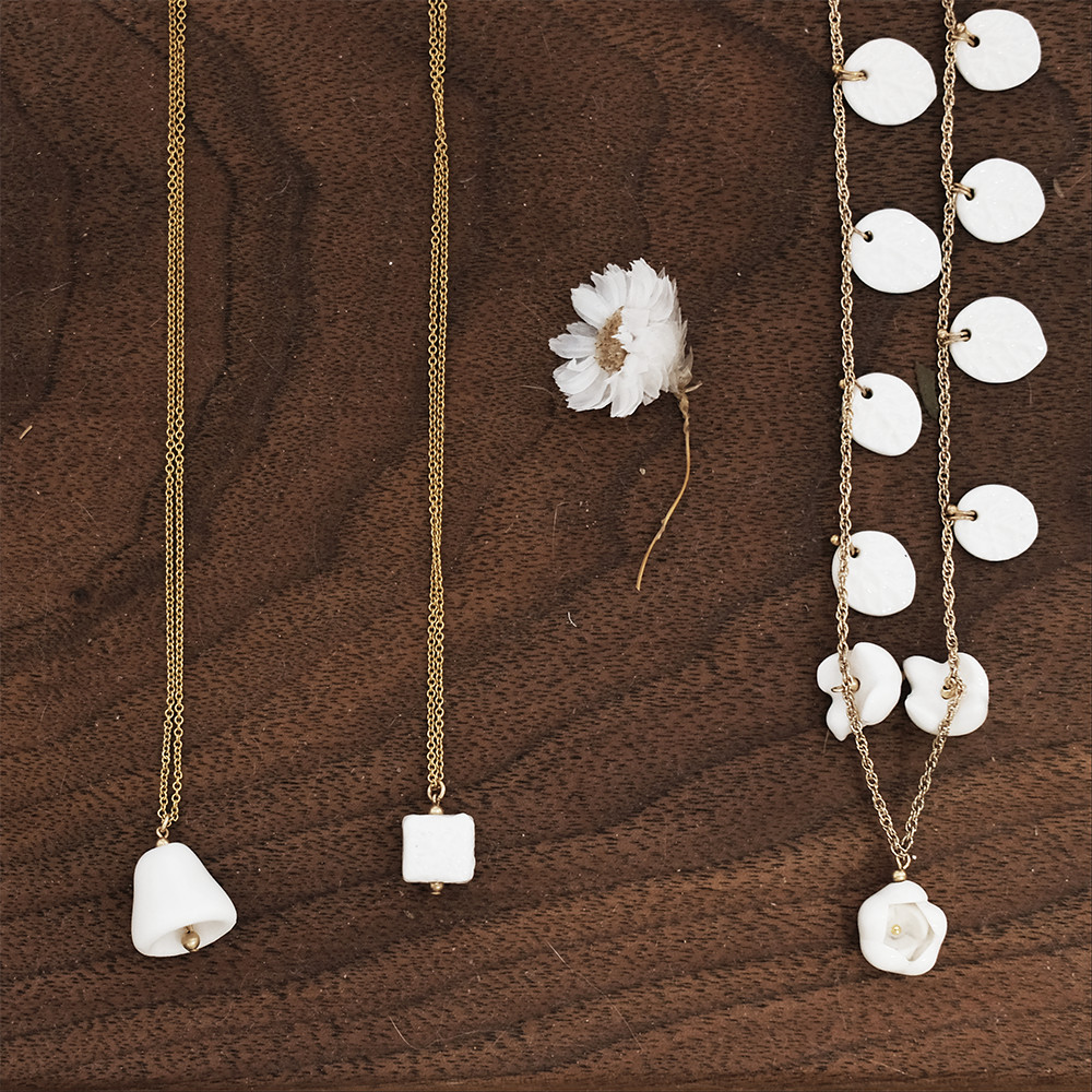 Chain material: alloy/silver-plated/gold-plated + handmade white porcelain