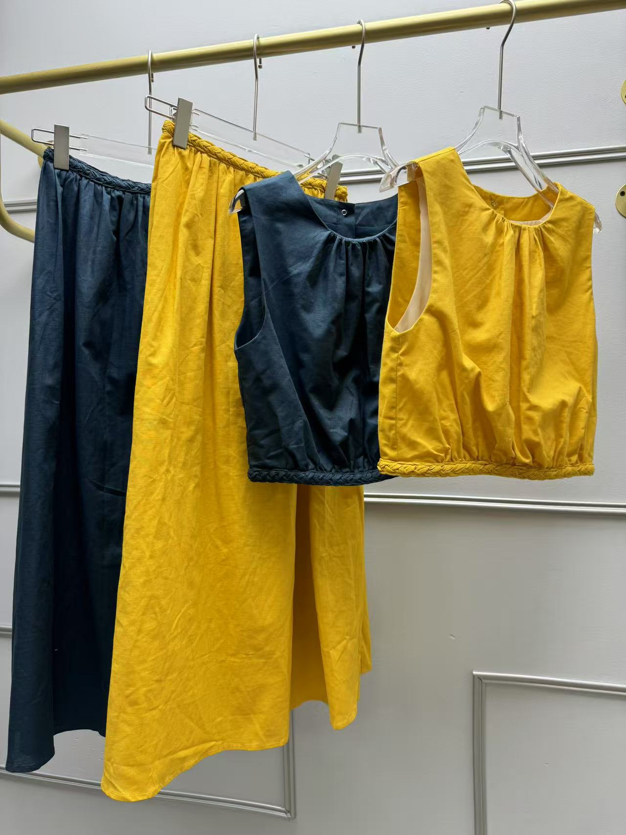 Color: yellow top, blue top, yellow skirt, blue skirt