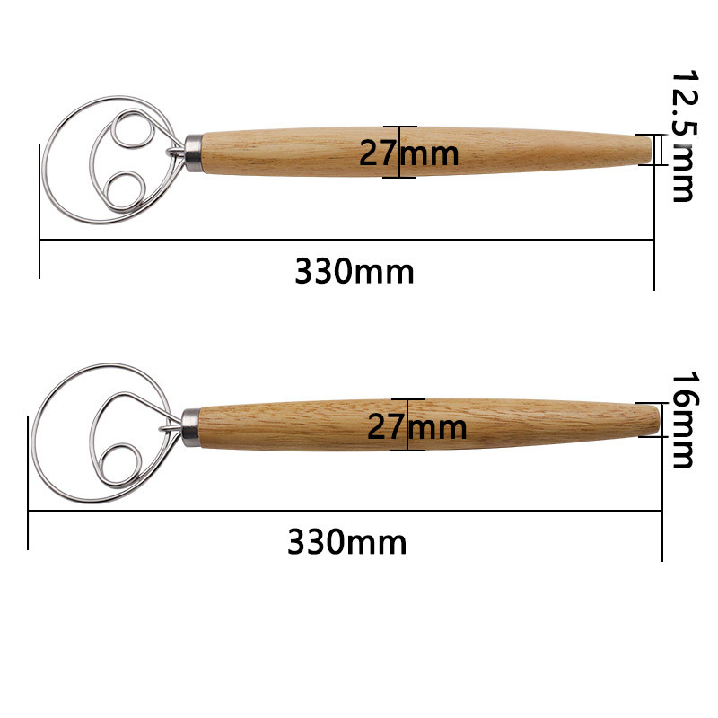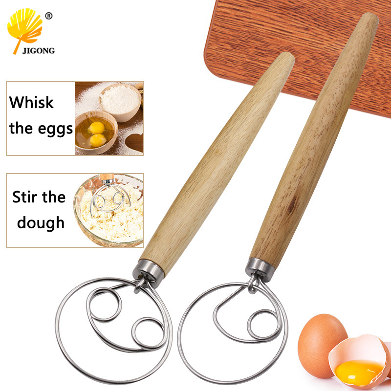 Uses: Home baking assistant, can stir egg liquid, flour, cream, etc., solid wood handle, comfortable grip double ring mixer (PP bag)