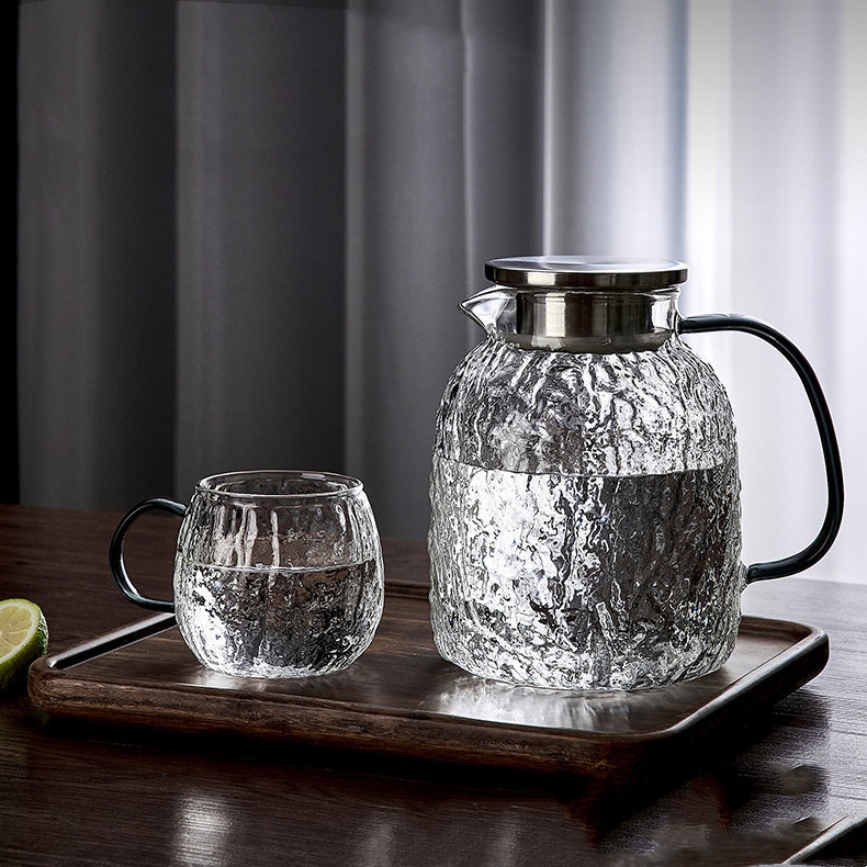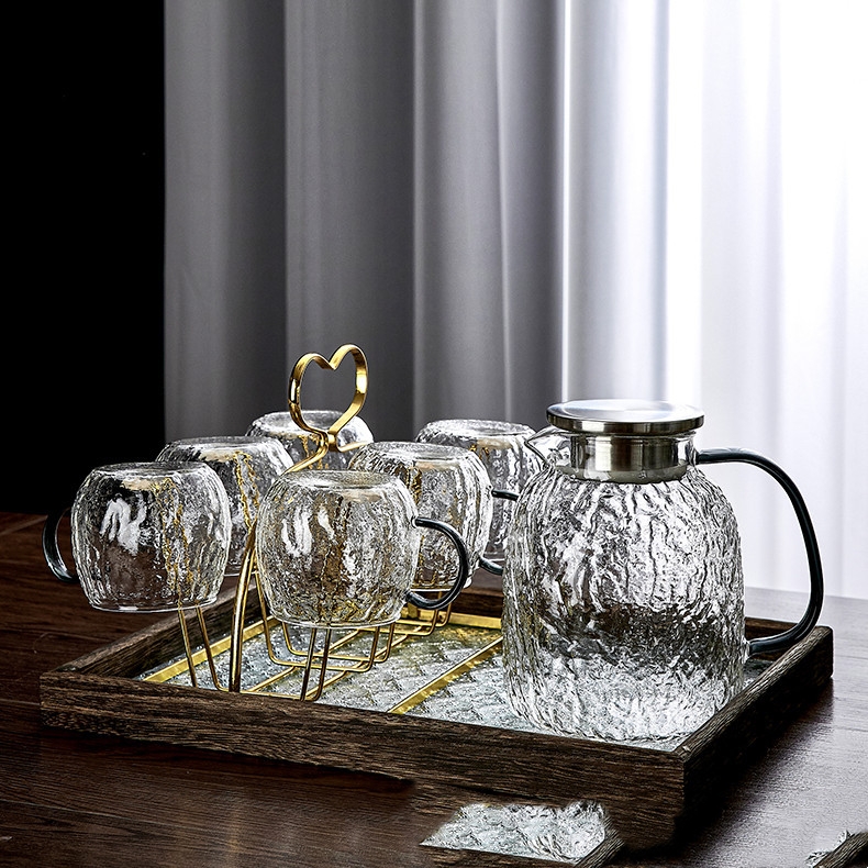 Product information:Color: Black cold kettle, transparent cold kettle, black round cup, transparent round CupScope of Application: scented tea, cold water, othersStyle: modern simplicityCraft: Hammer texture