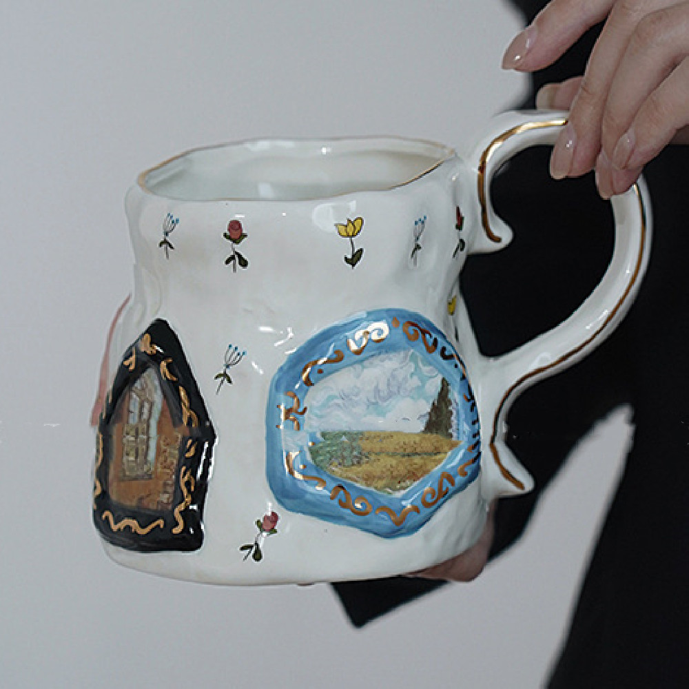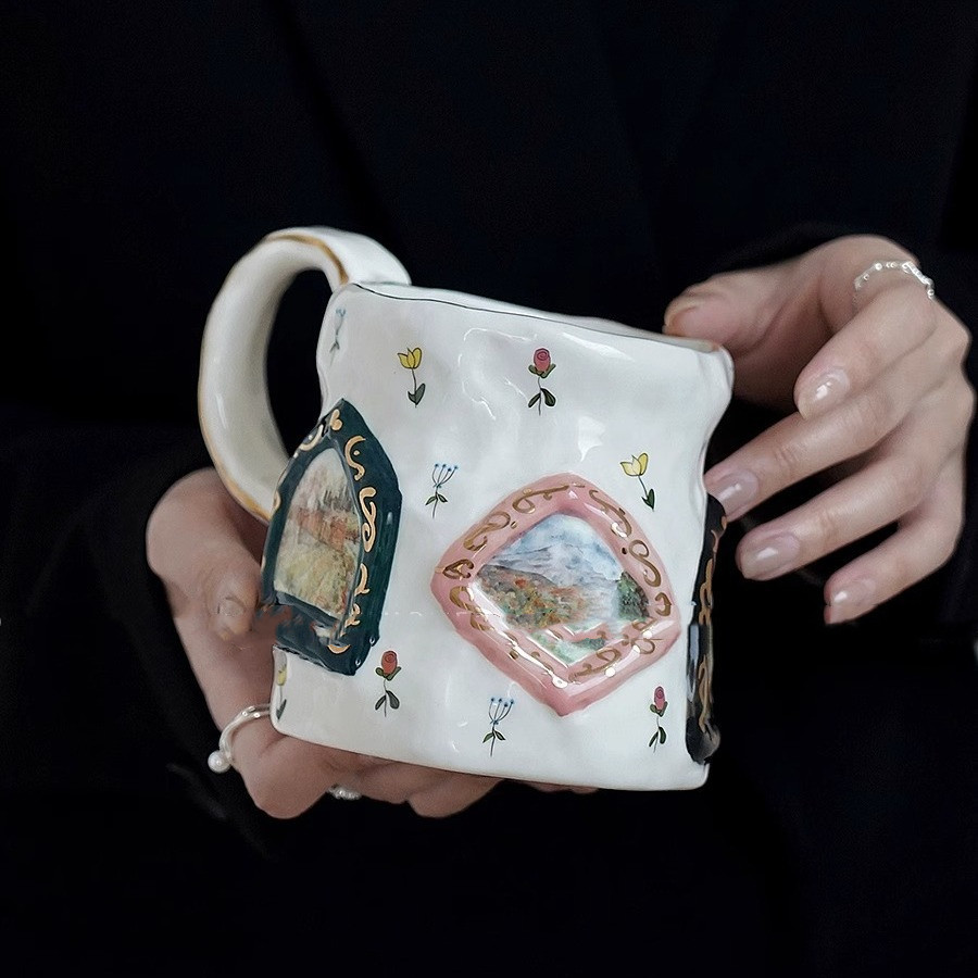 Product information:Color: Small window Vientiane mugApplicable people: generalMaterial: CeramicStyle: European styleCapacity: 510mlSpecifications: 510ml/mouth 8.8 high 10CM