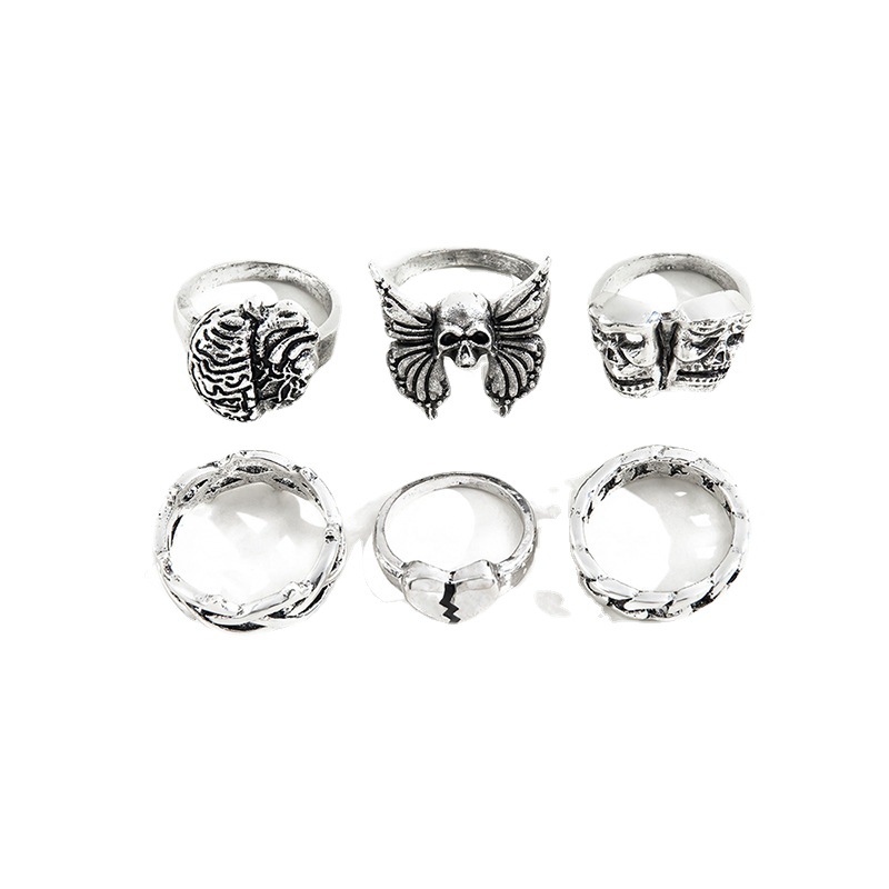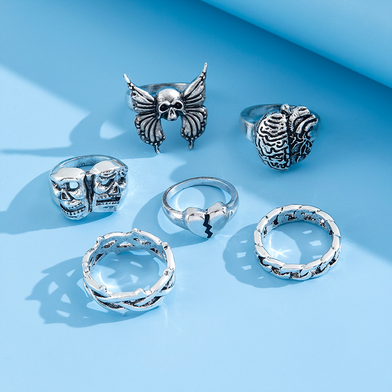 Mens Fashion Vintage Exaggerated Skull Hollow Brain Love Necronomicon Ring