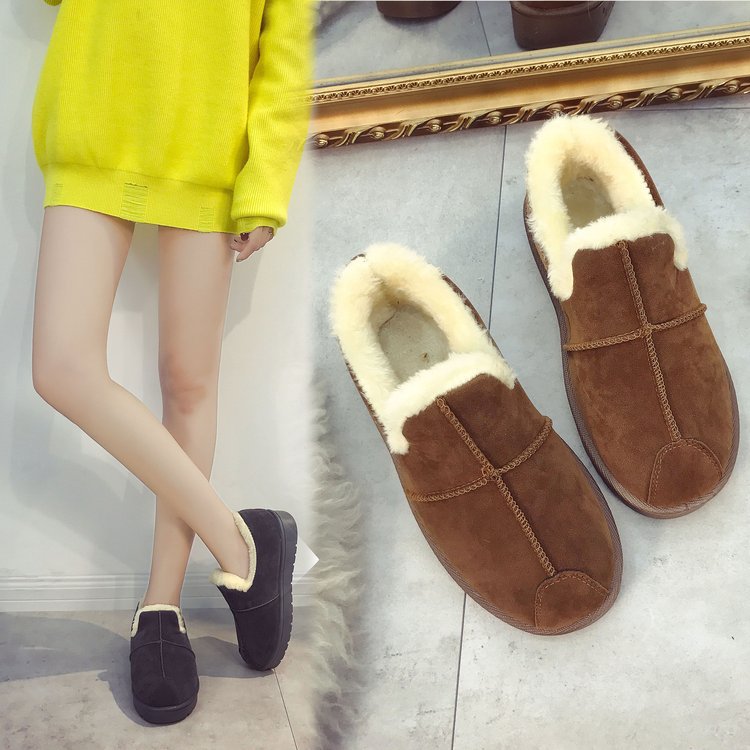 Bread shoes 2021 winter snow boots two Korean students short tube shoes slip-on plus velvet new female warm autumn