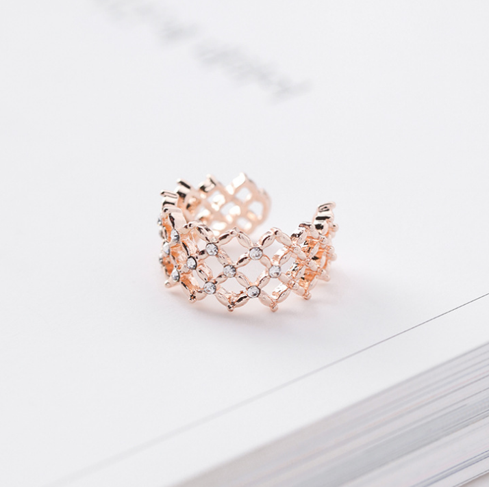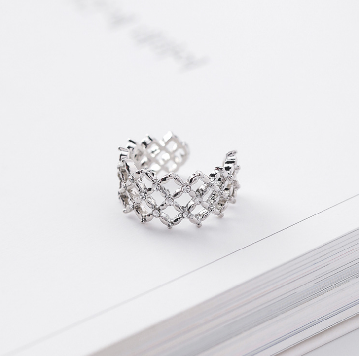 Ring female Japanese and Korean tide tail ring personality student joint ring atmosphere grid diamond network red index finger ring