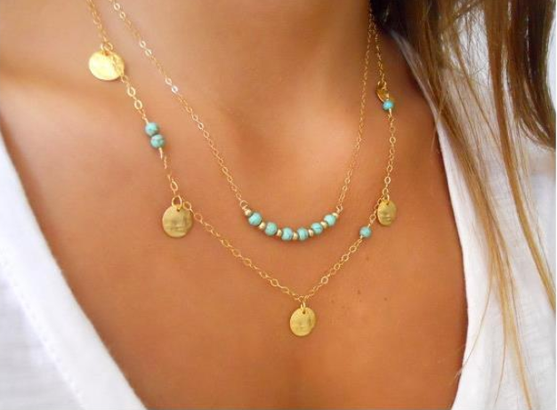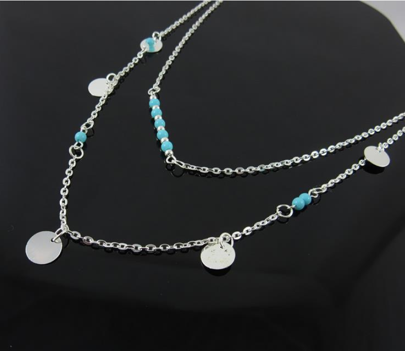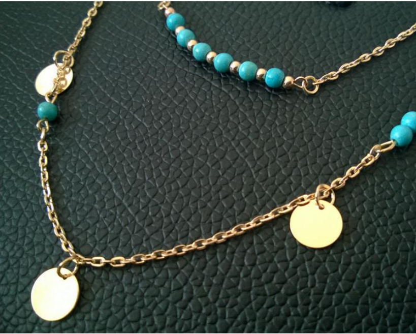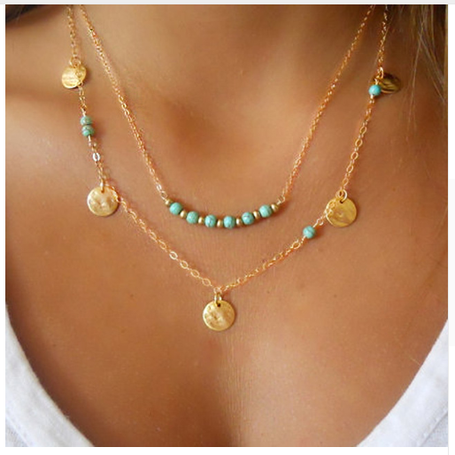 Europe and the United States foreign trade multi-layer round turquoise pendant necklace fashion trend temperament wild clavicle chain jewelry C054
