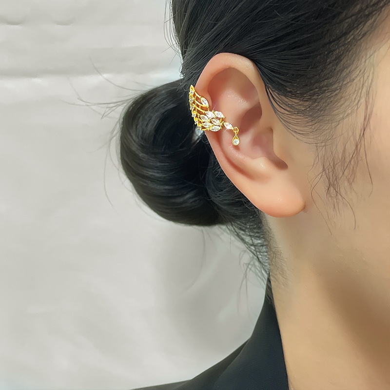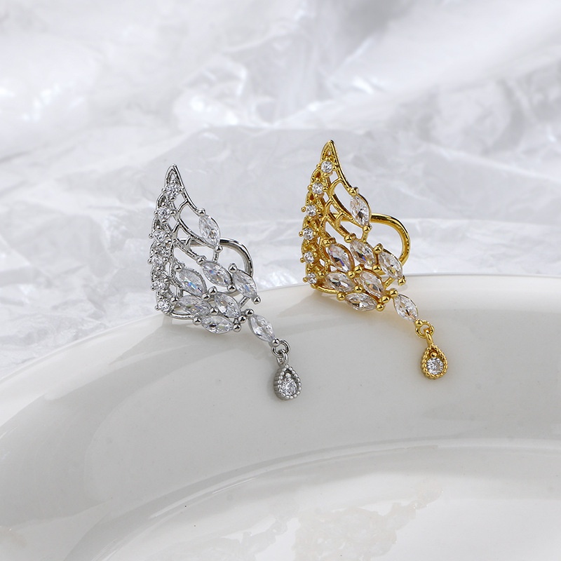 Color: One water droplet ear clip on the right ear wing (platinum color), one water droplet ear clip on the right ear wing (gold)