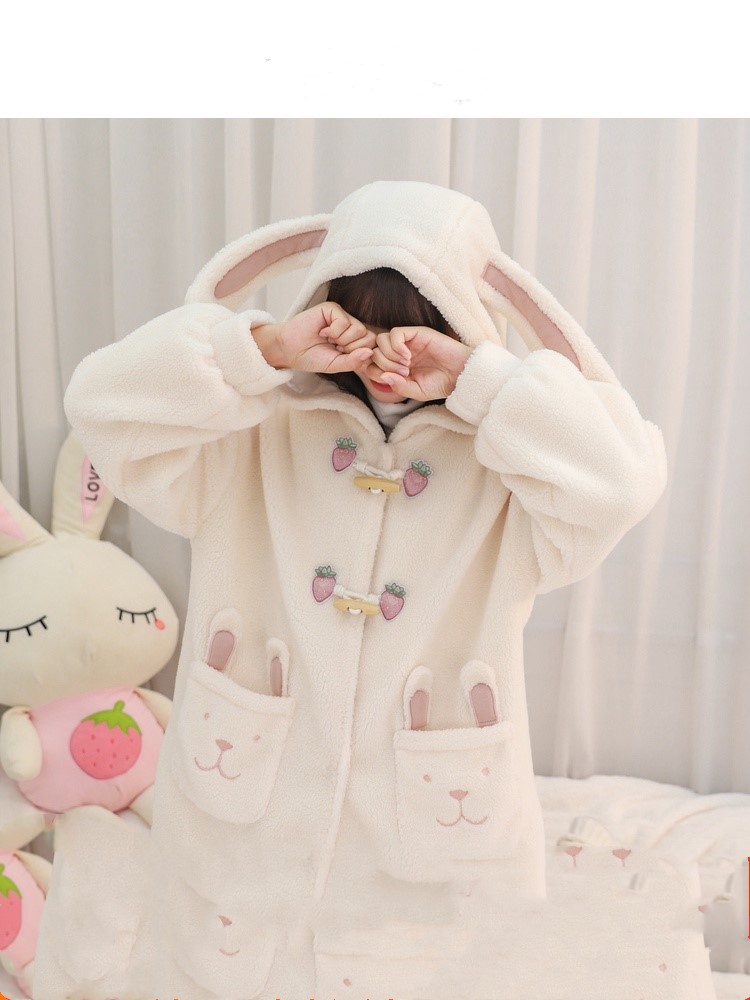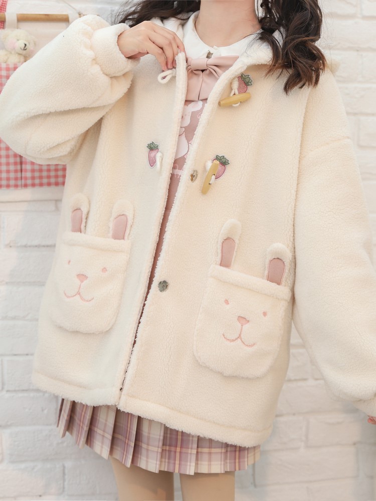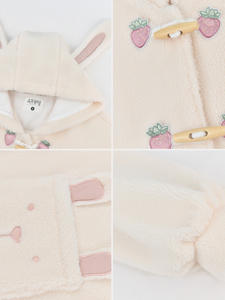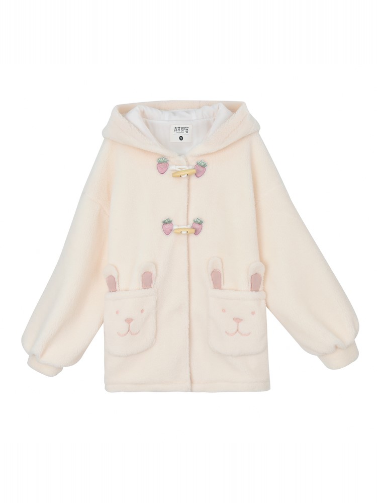 Material: PolyesterSize: S M LPattern: Cartoon animationCollar: HoodedStyle: sweetSweetness: Mori GirlClothing placket: single row two buttonsColor classification: apricotFabric material: polyester