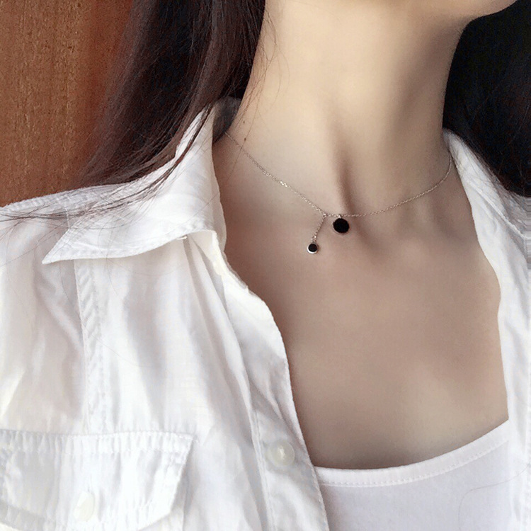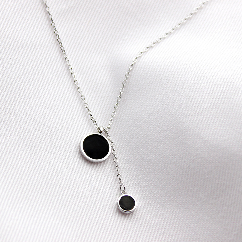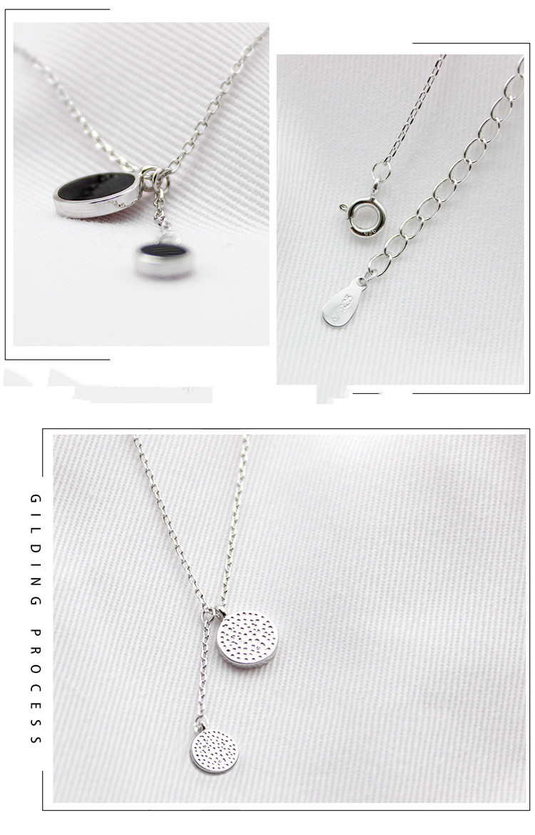 Material: Whole body 925 sterling silver, electric platinum, dripping oil on the surfaceSize: 40+5 Big circle is 8mm, small circle is 5mmTreatment process: dripping oilType: NecklaceStyle: Women'sModeling; Geometry