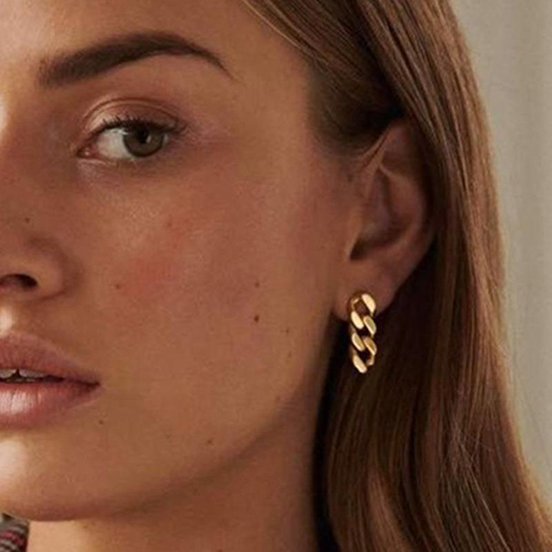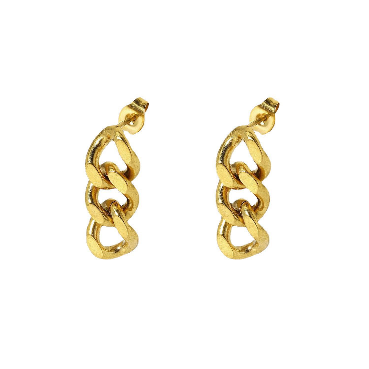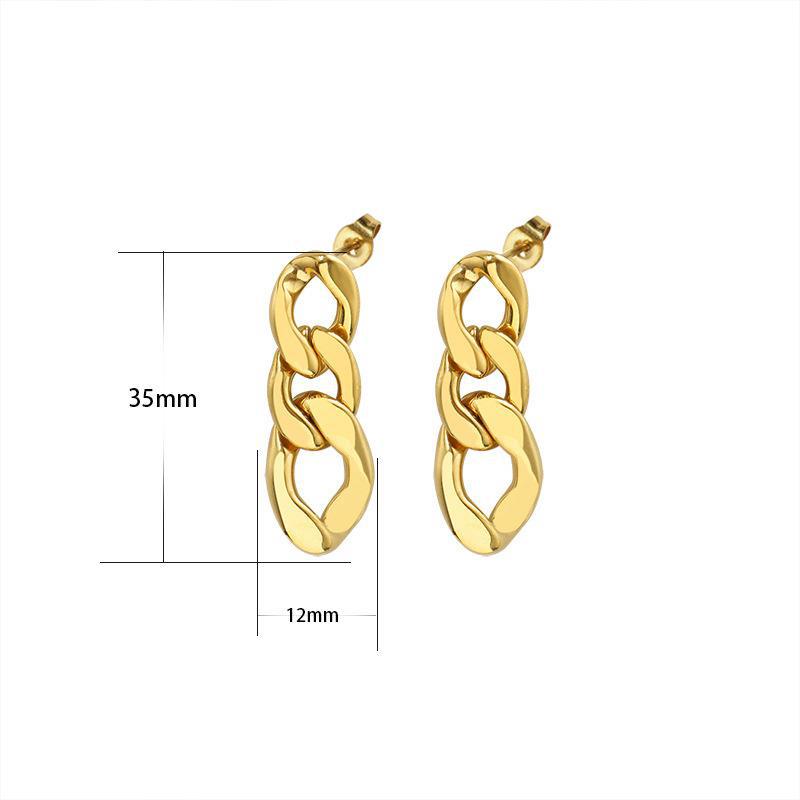 Product information:Treatment Process: Electroplating Color: 7141-35mm flat chain stud earrings (two small and one large) Applicable population: Female Material: titanium steel Shape: Geometry Popular elements: Asymmetric Style: fashion OL