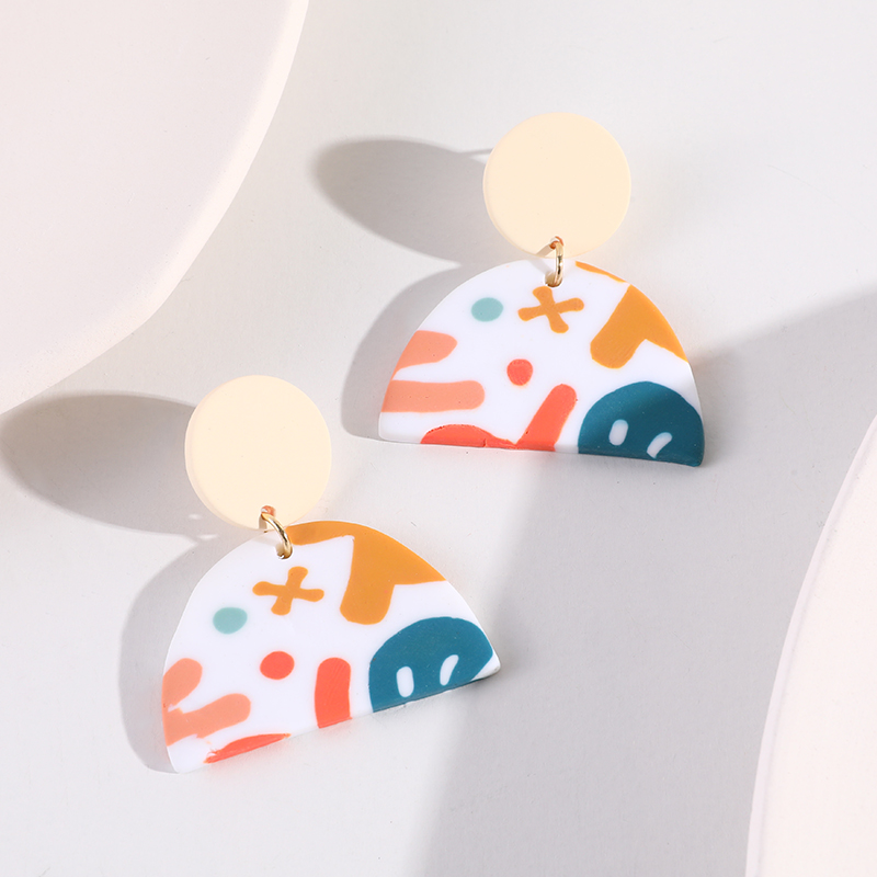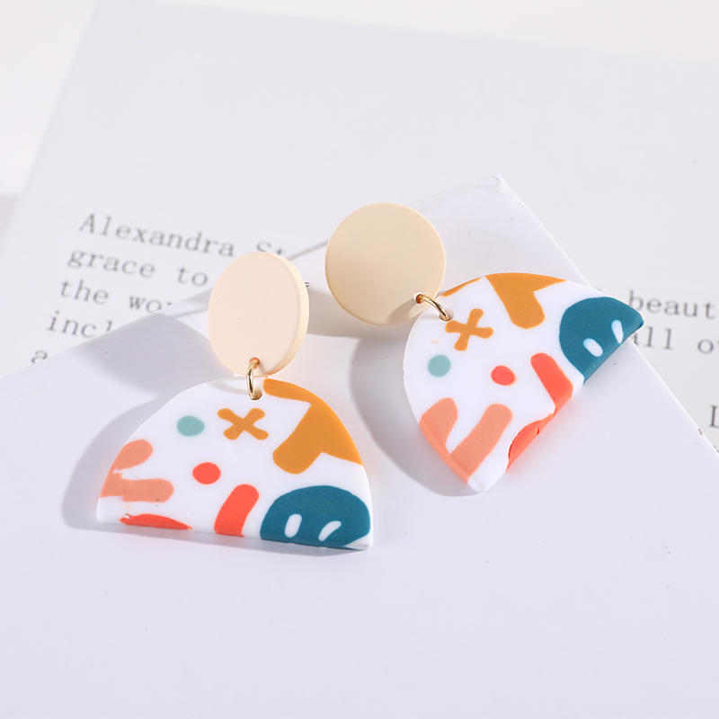 Product Information:Style: Europe and AmericaMaterial: ClayTreatment process: electroplatingType: EarringsStyle: Women'sModeling: GeometryPacking List:Earrings*1pair