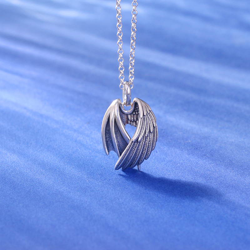 Color Classification: A: [Angel and Devil Wings] 999 Pure Silver Pendant + Wax Rope [Send Certificate] B: [Angel and Devil Wings] 999 Pure Silver Pendant + 925 Silver Chain [Send Certificate]